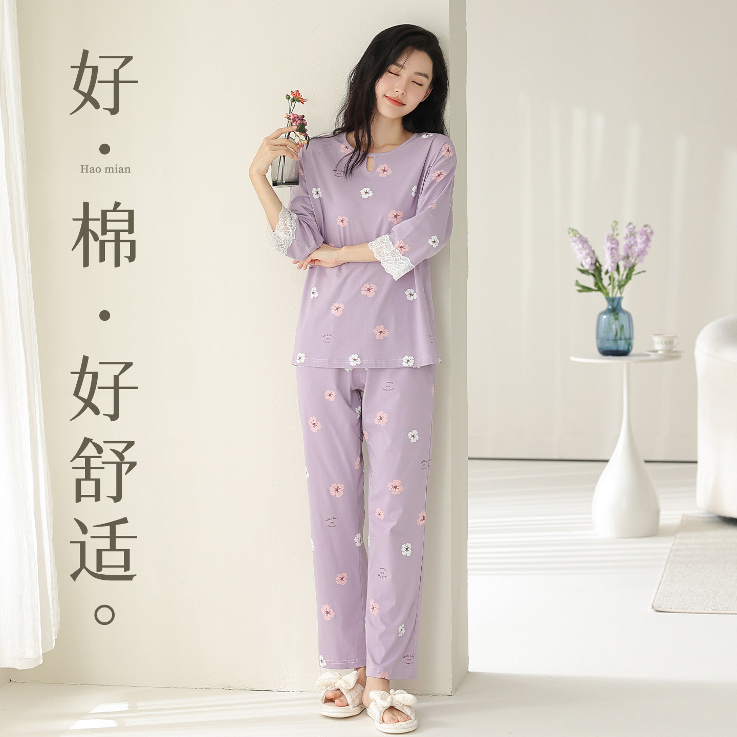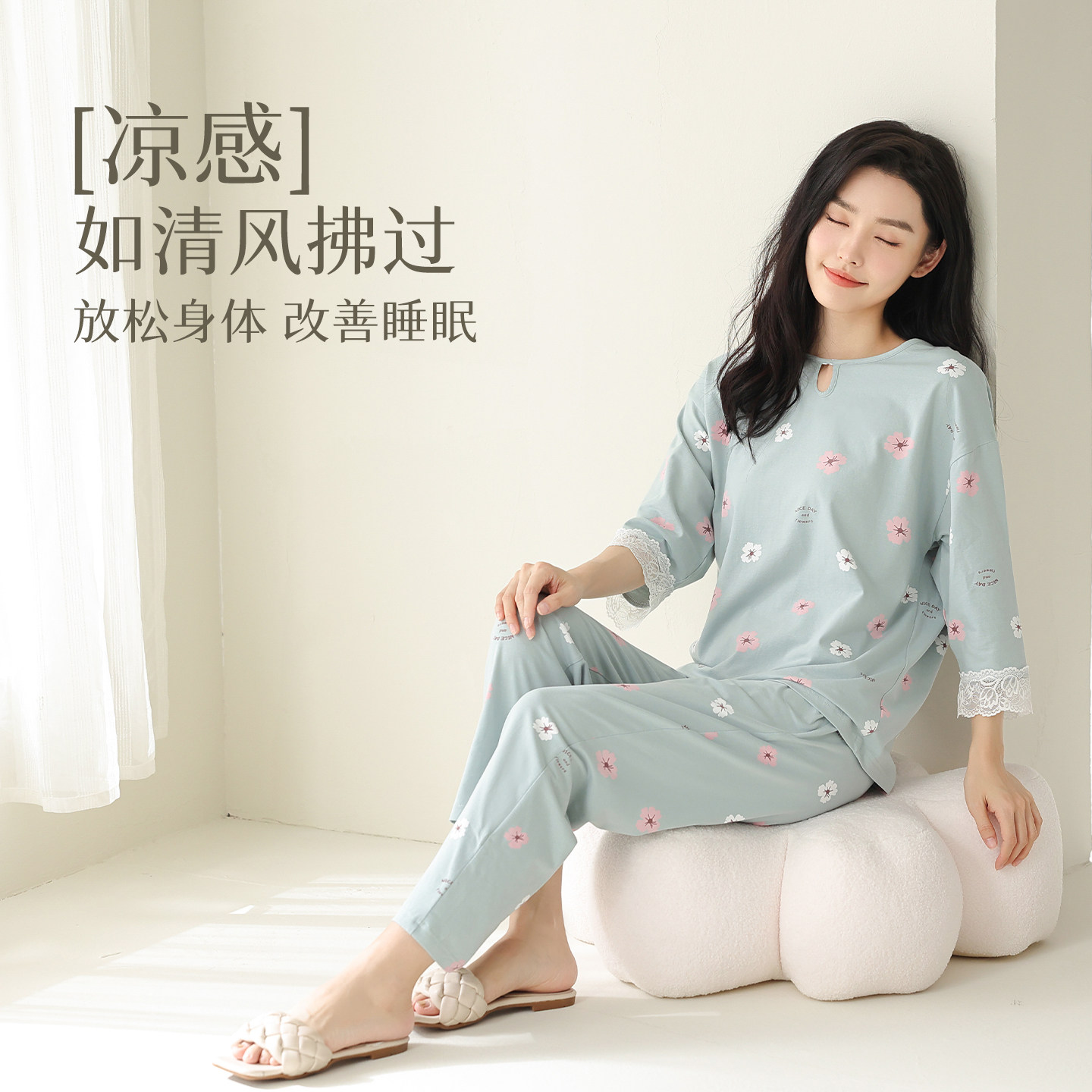 新一步2026年新款睡衣女夏天七分袖纯棉家居服套装春夏季休闲薄款