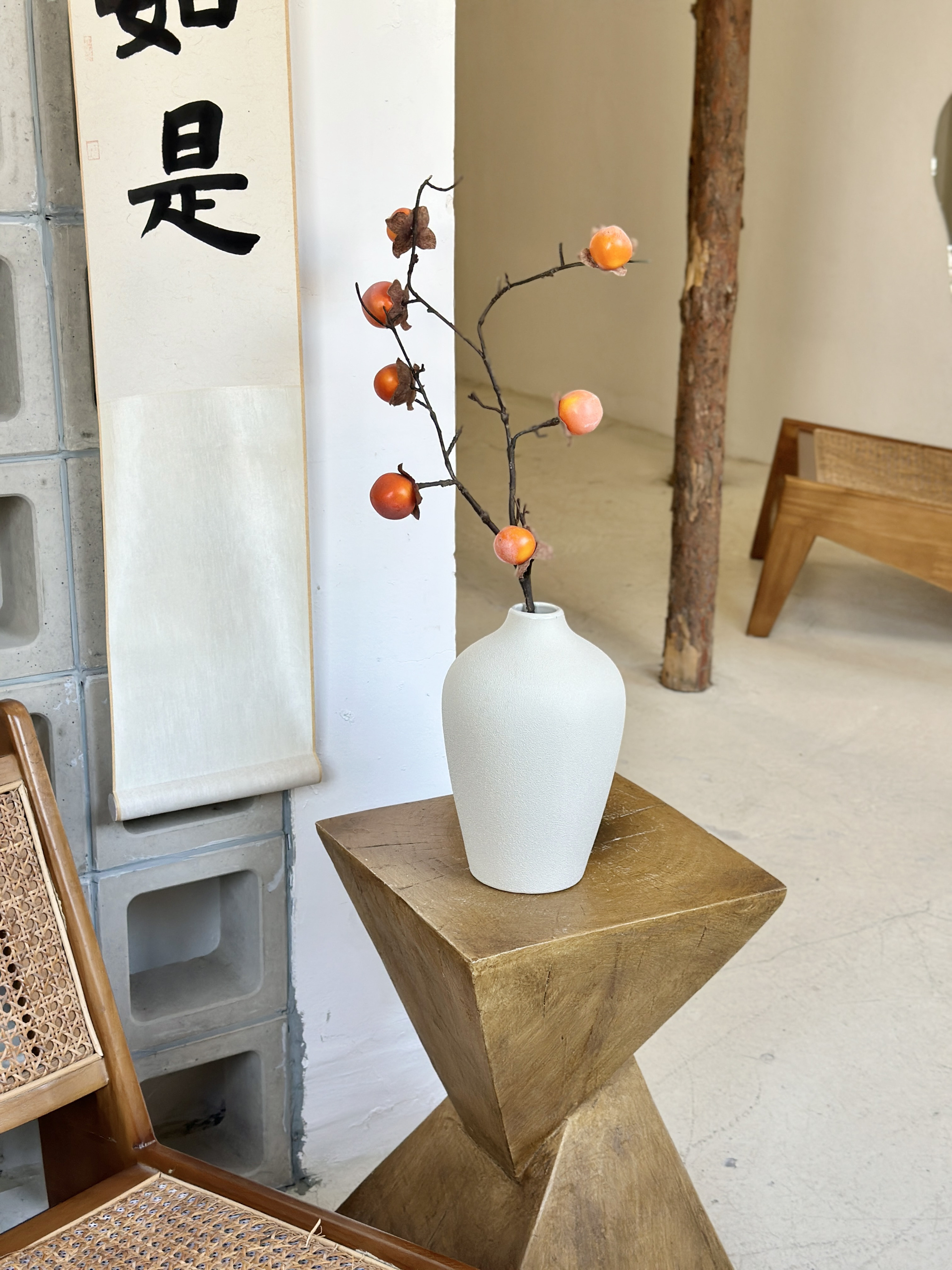 高级感侘寂风白色陶瓷花瓶摆件客厅插花中古风艺术陶罐可水培养花