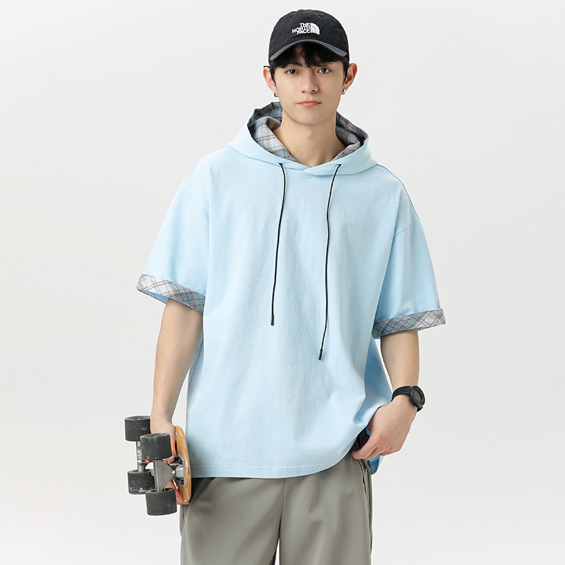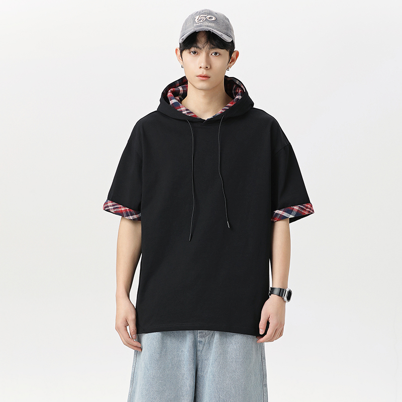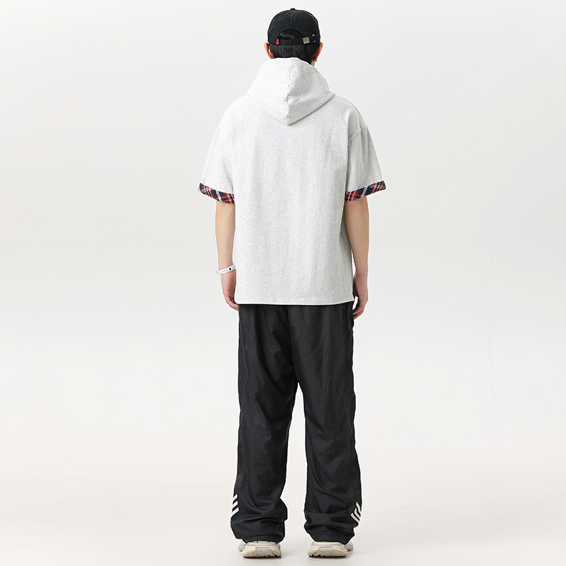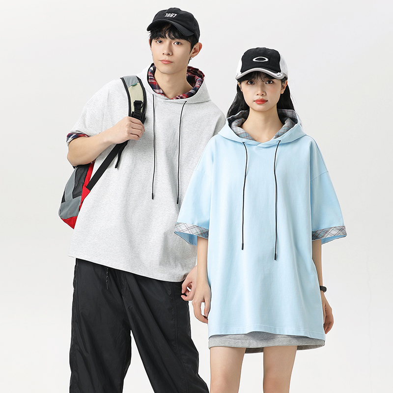 回力美式连帽衫短袖t恤男士夏季2025新款男生假两件宽松半袖卫衣