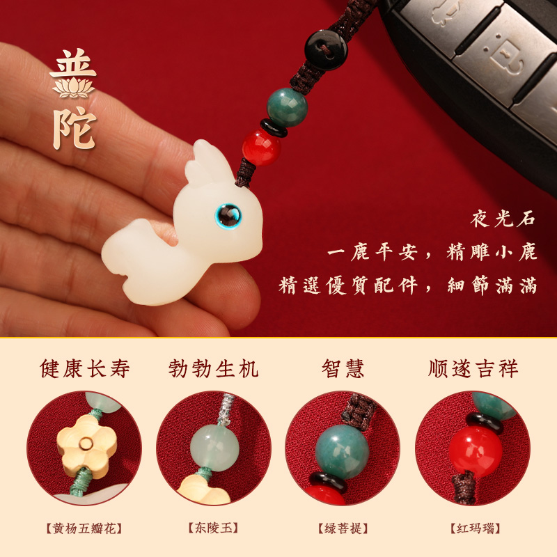【普陀山官方】一路平安夜光小鹿汽车钥匙扣挂件男女款情侣手机链
