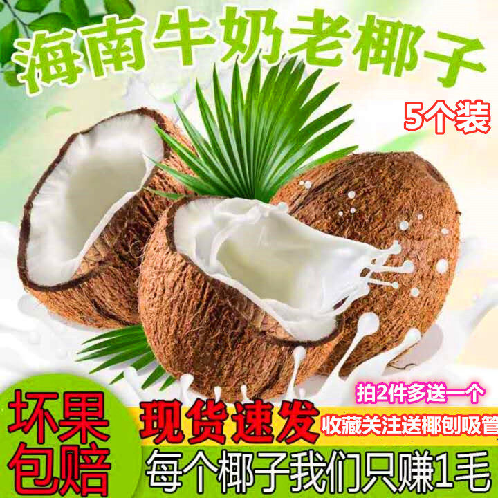 海南新鲜椰子毛椰当季孕妇水果整箱牛奶老椰子6非泰国椰青耶子4个