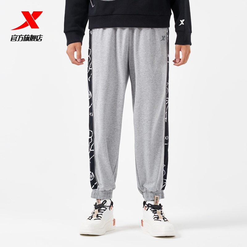 特步运动裤男款2022秋季新款篮球训练长裤宽松休闲拼接束脚针织裤