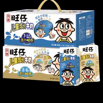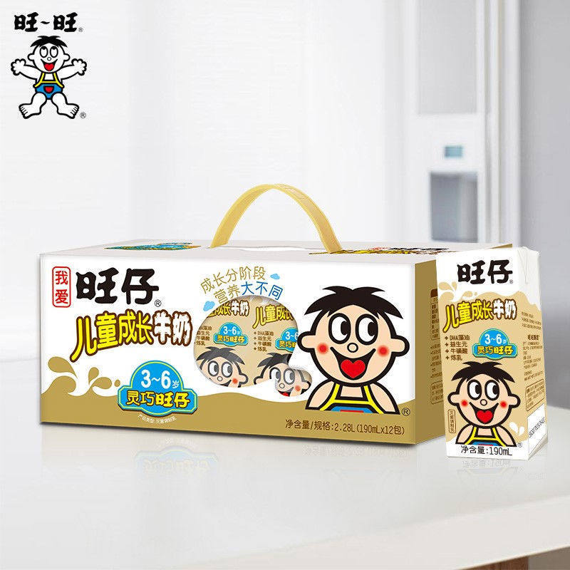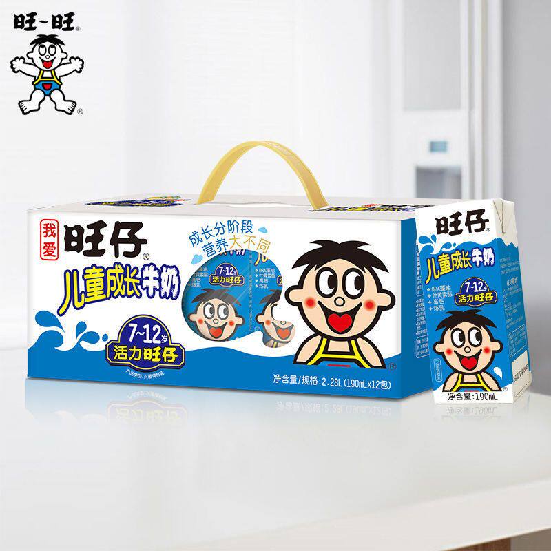 旺仔牛奶儿童成长牛奶学生早餐高钙奶190ml*12礼盒dha