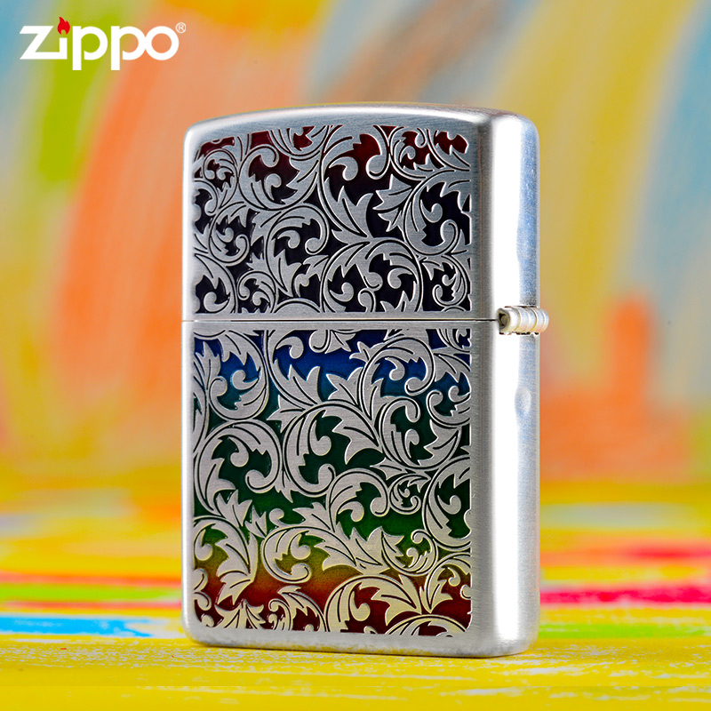 zippo打火机 限量熏银彩虹唐草 官方正品煤油zppo生日送男友礼物