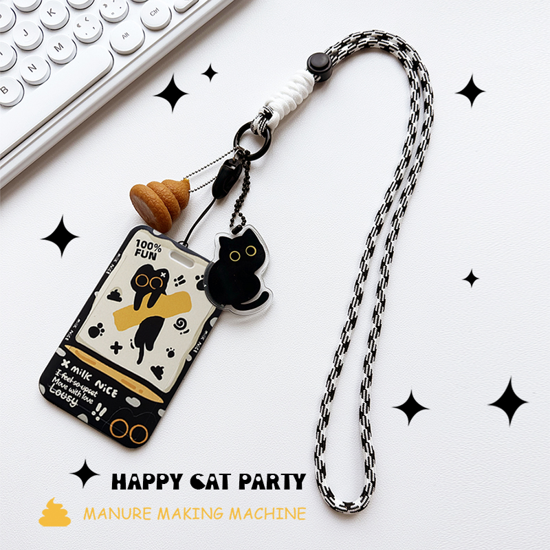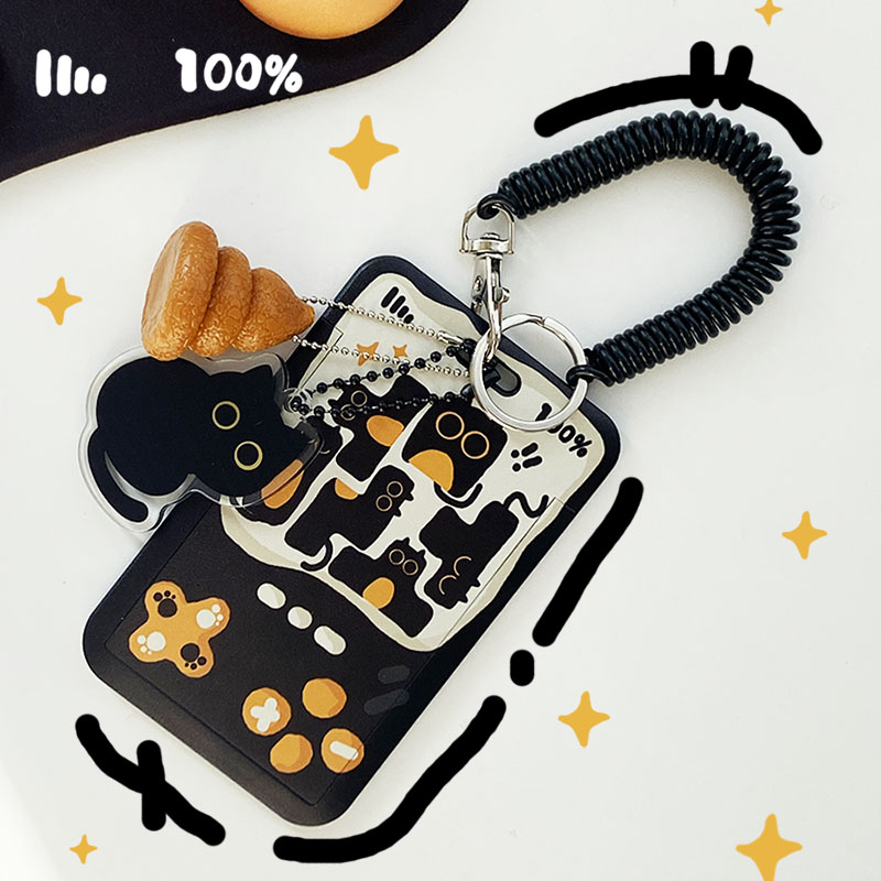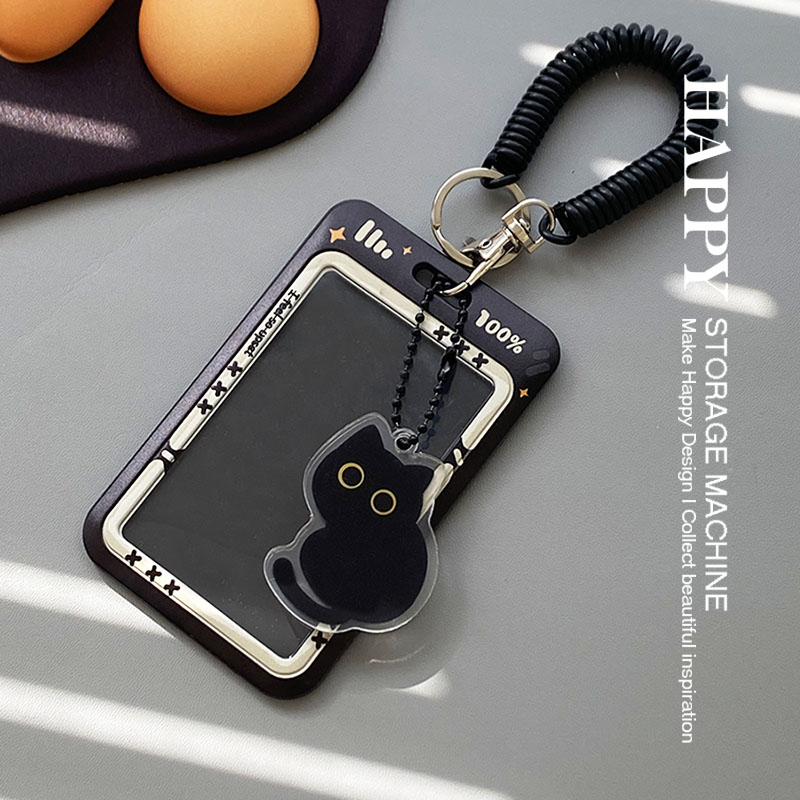 HAPPY原创可爱方块小黑猫抽拉便携卡套地铁食堂门禁学生证件收纳