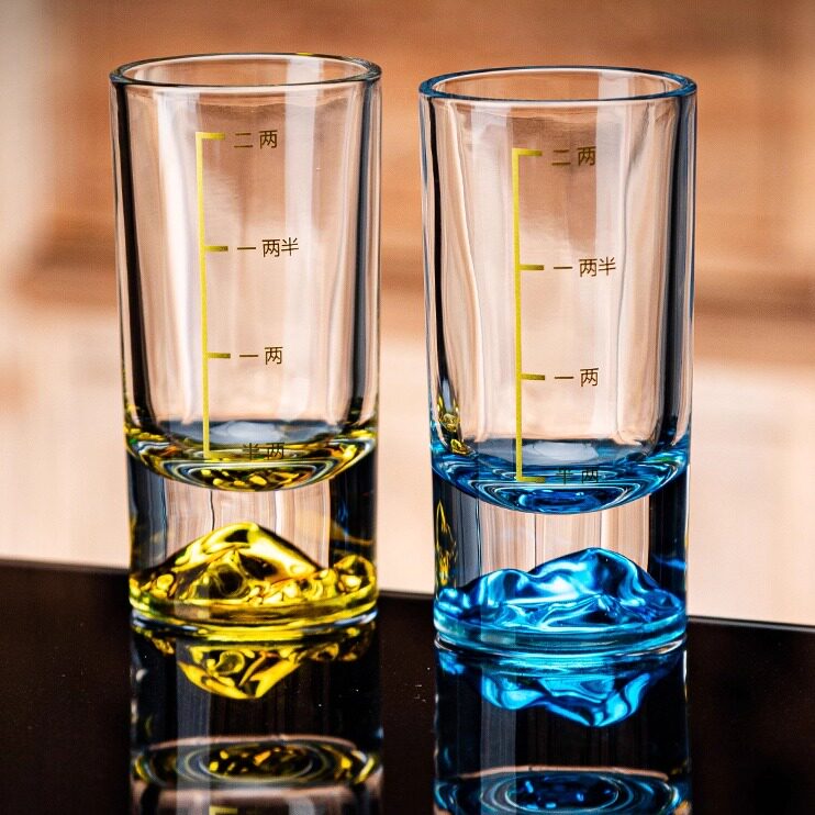 家用蓝山白酒杯酒具套装加厚二两分酒器刻度玻璃金山一口杯子弹杯