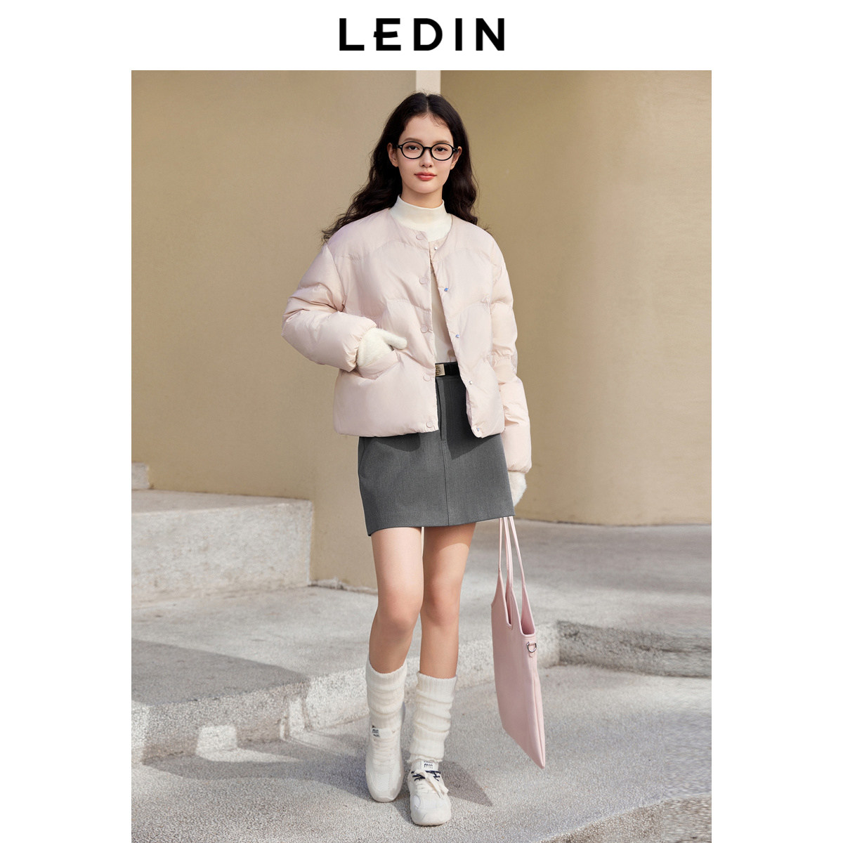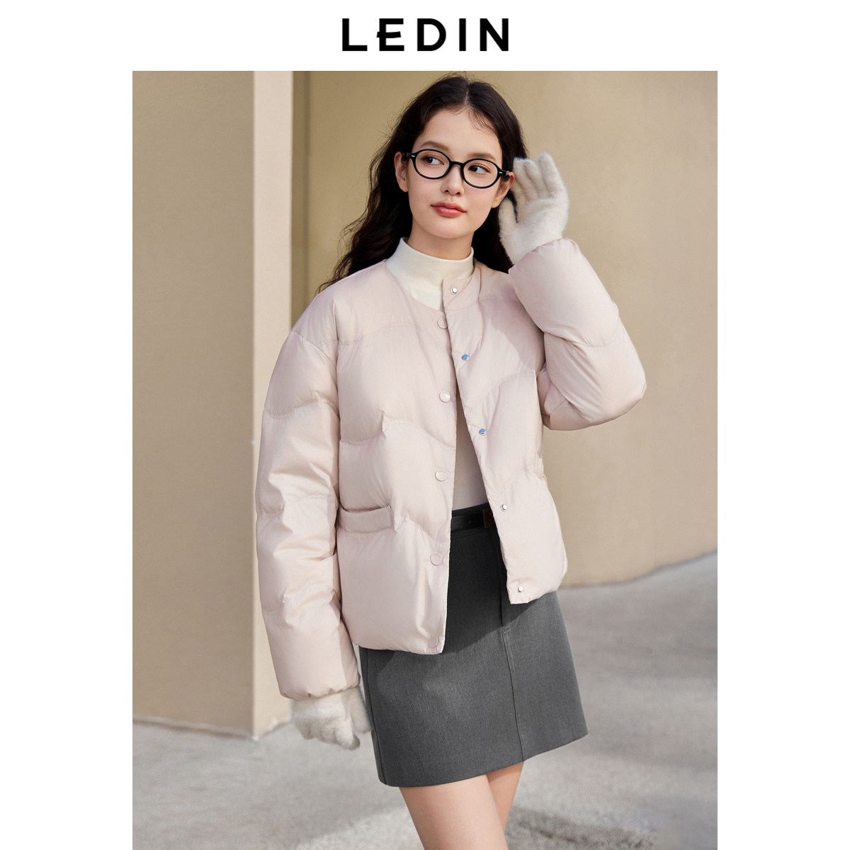 乐町无领宽松轻薄羽绒服女冬季新款短款简约好穿圆领保暖羽绒外套