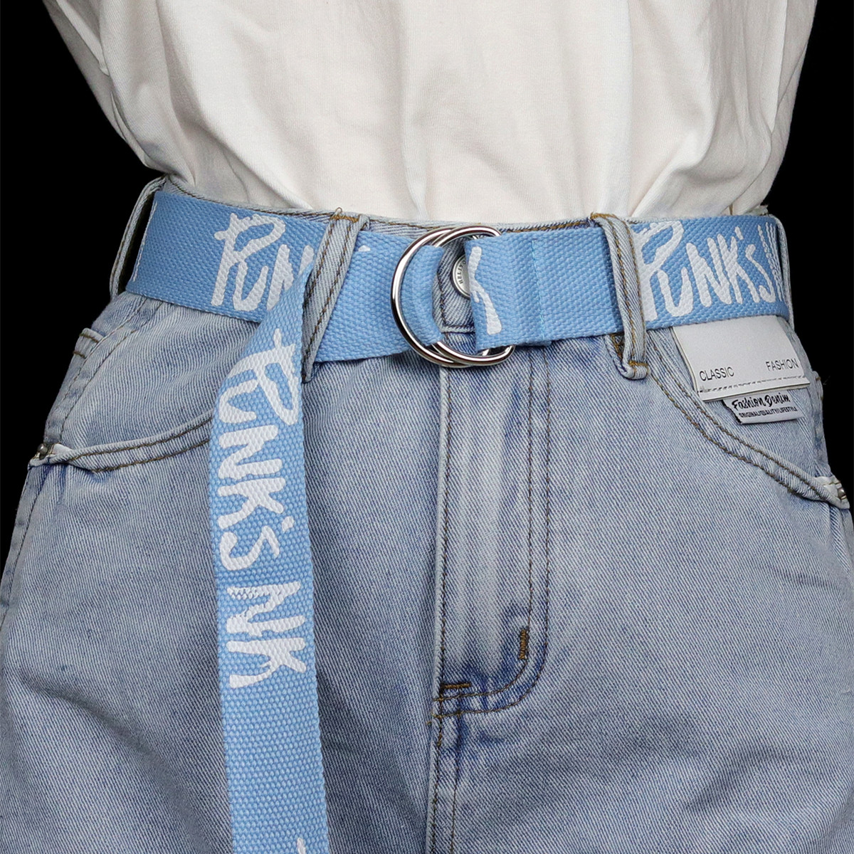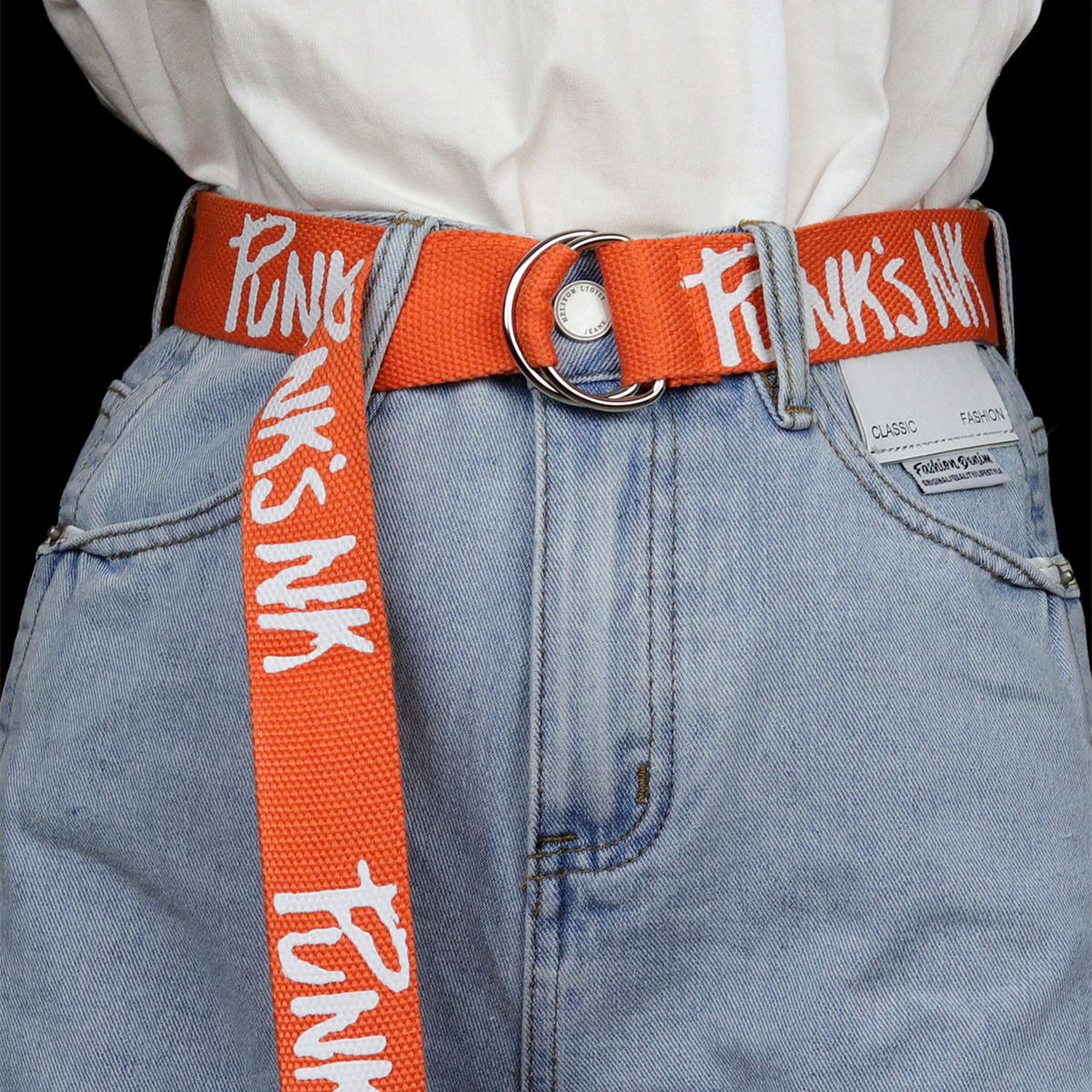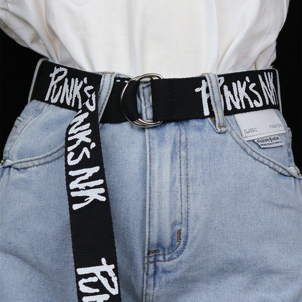 白色帆布皮带女装饰潮流街舞学生腰带男款女款百搭ins风牛仔裤带