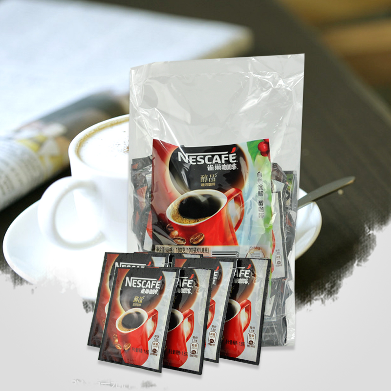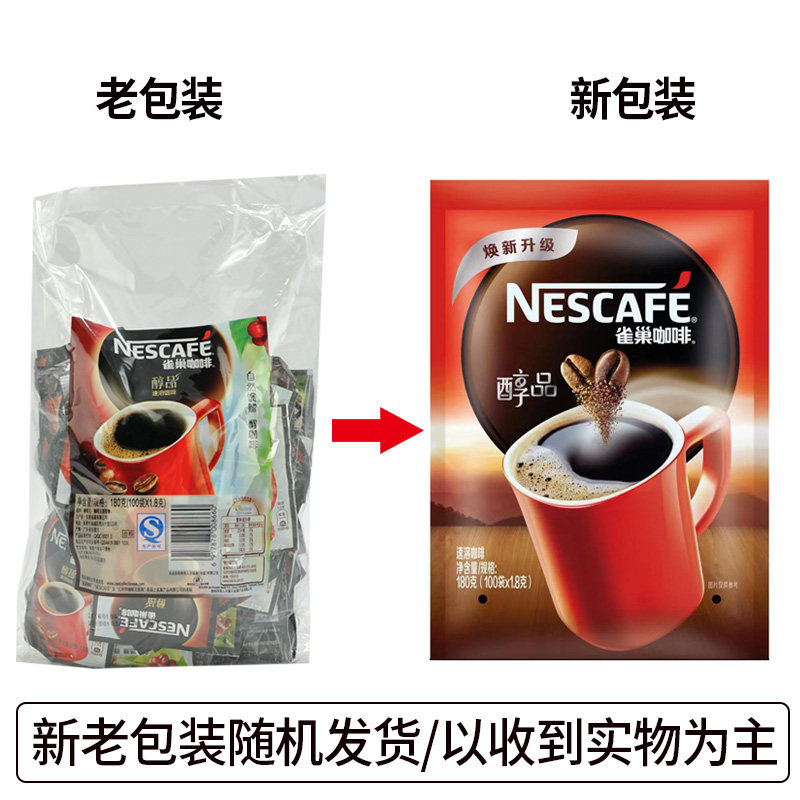 雀巢咖啡醇品即溶黑咖啡180g袋 速溶未添加蔗糖清咖纯咖啡粉100包