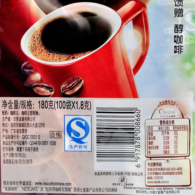 雀巢醇品即溶180g未添加纯咖啡粉
