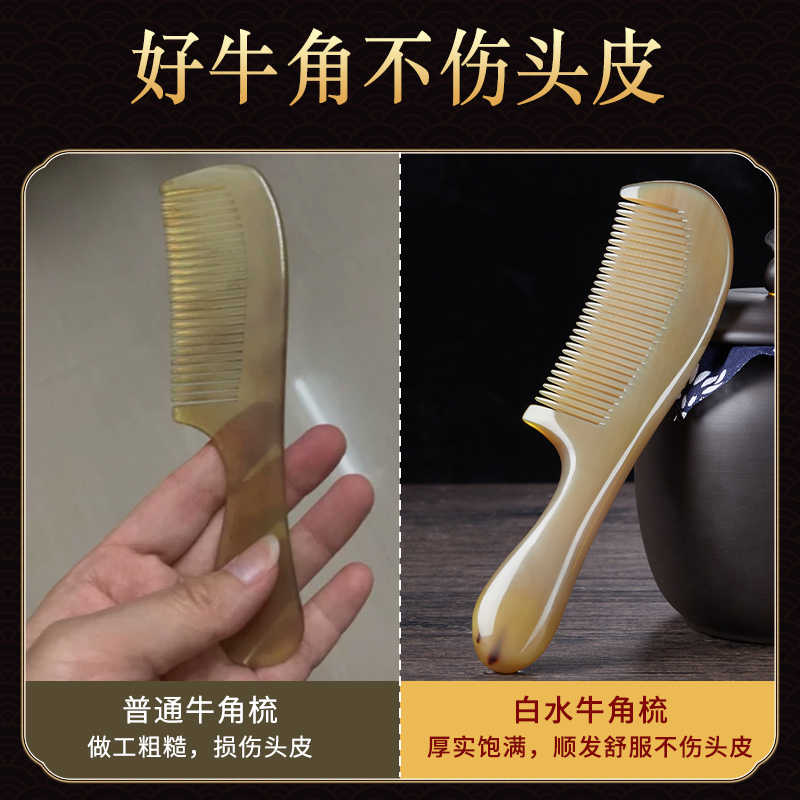 纯正天然白水牛角梳子正品官方旗舰店真正加厚按摩经络梳头部头发