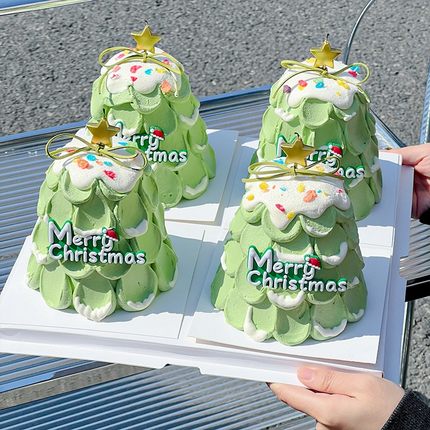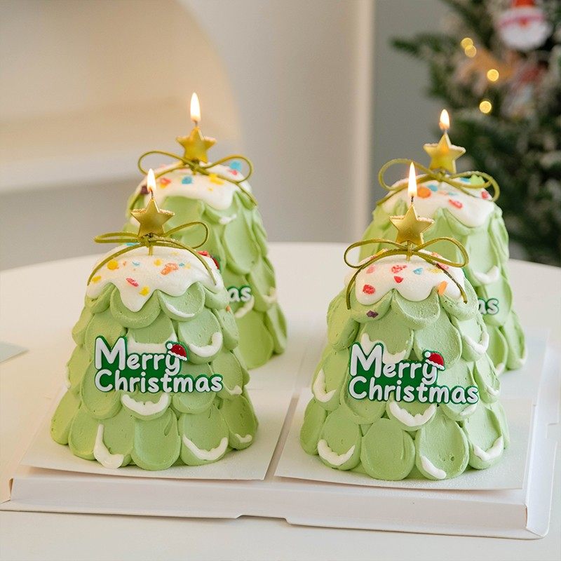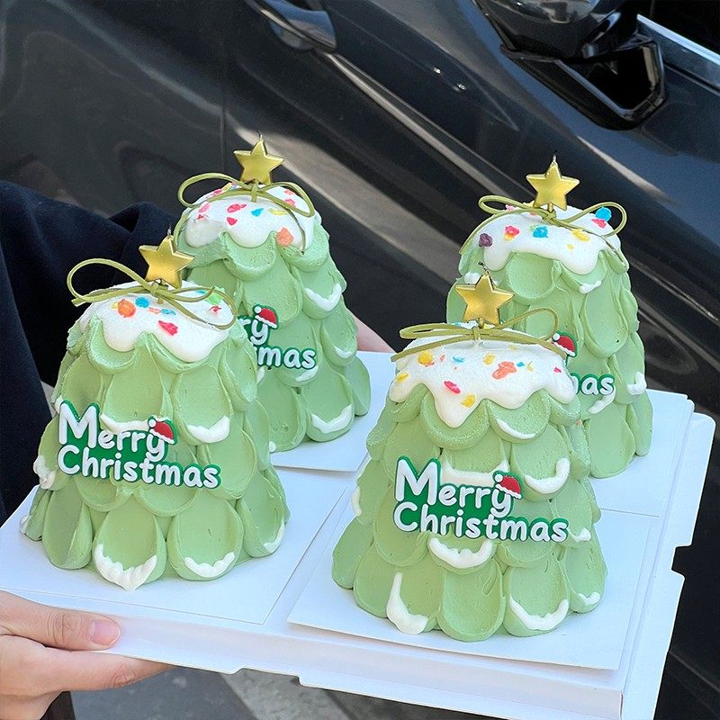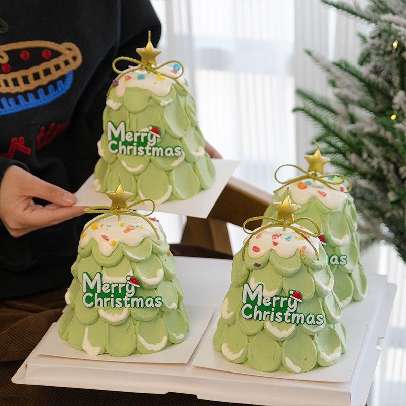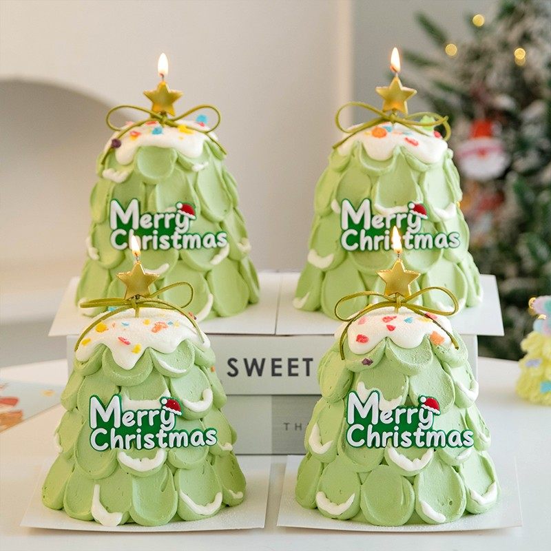 2025圣诞节圣诞树造型蛋糕装饰摆件软胶圣诞快乐五角星蜡烛插件