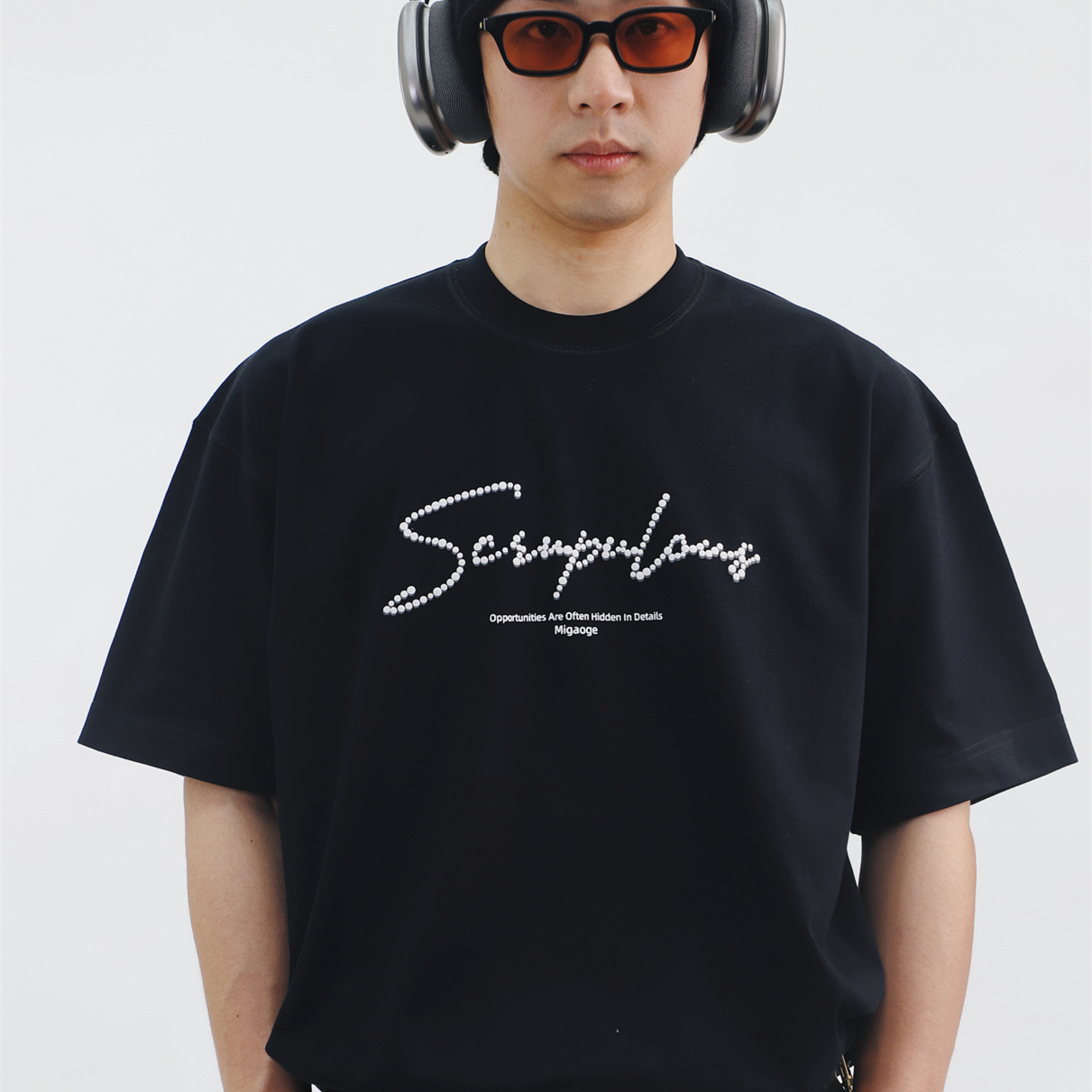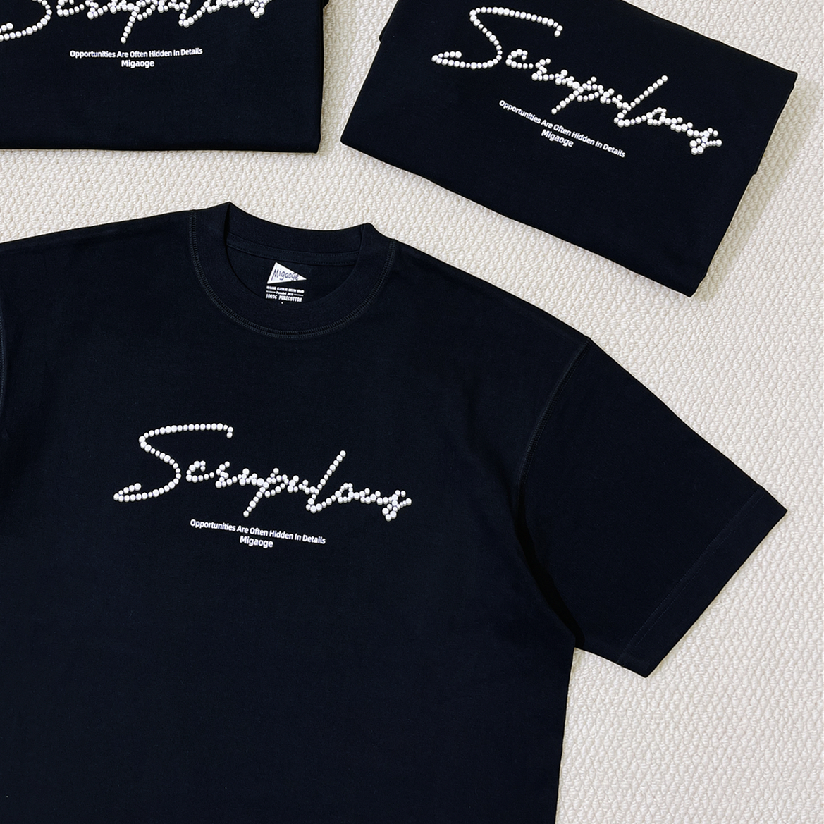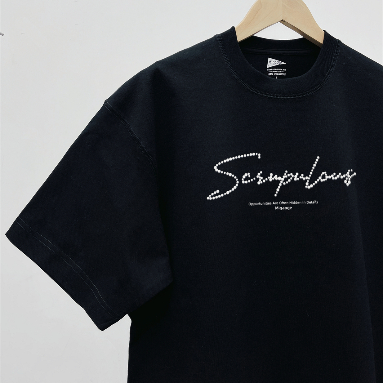2025新款270g重磅厚实纯棉三本针小领口宽松字母印花短袖T恤男女