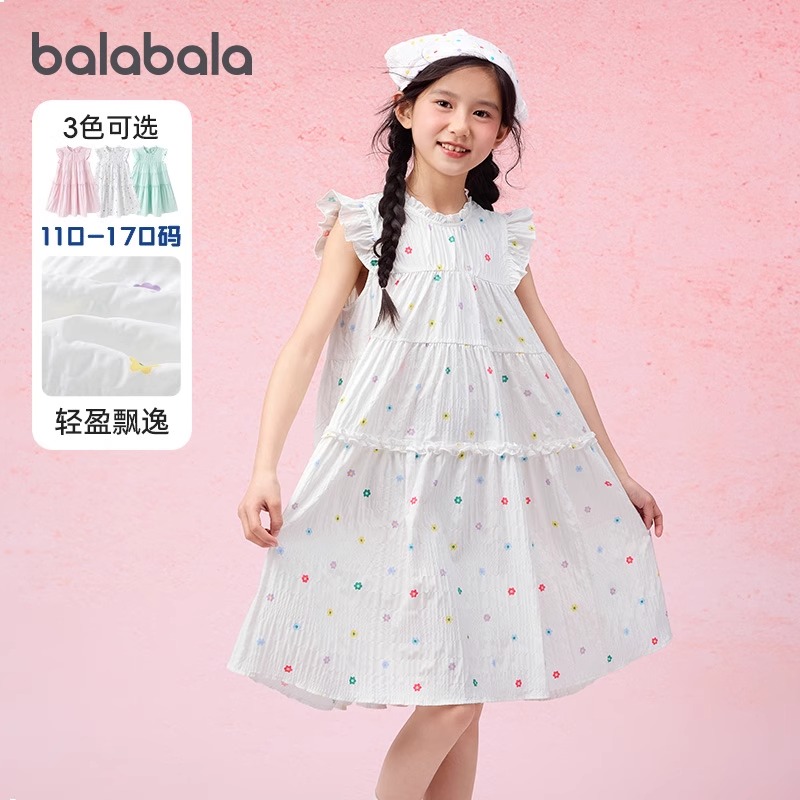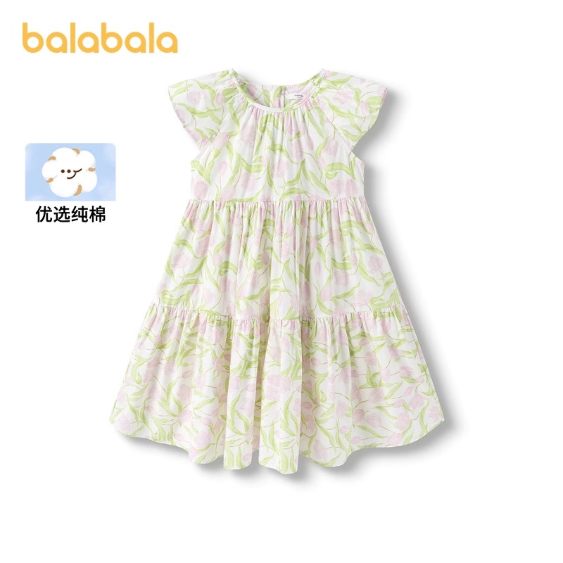 巴拉巴拉女童连衣裙大童纯棉洋气公主裙儿童碎花裙子夏装新款童装