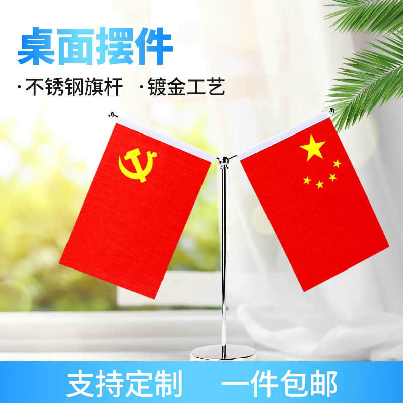 桌旗办公室桌面小摆件公司logo定制双面印制签约旗会议室各国国旗党旗红旗不锈钢金属底座Y型小桌旗装饰旗
