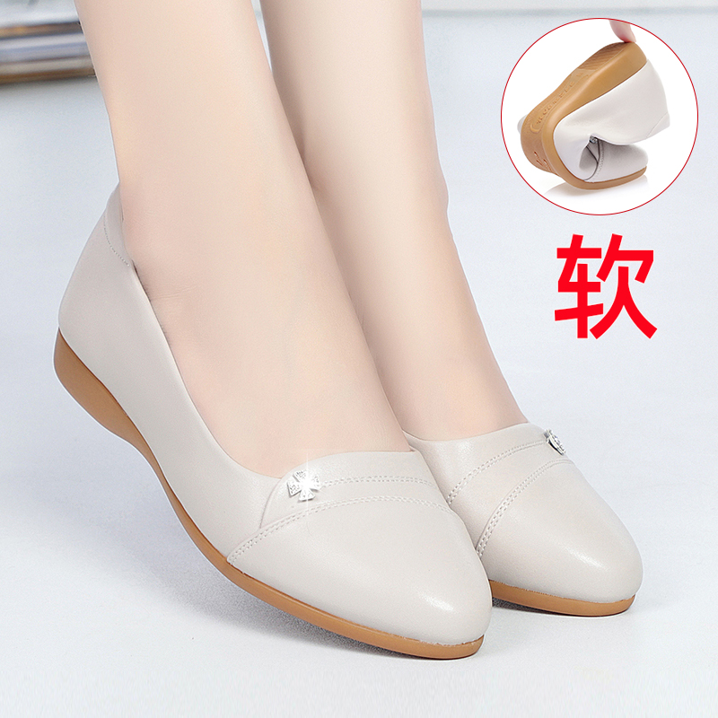时尚妈妈鞋子春秋新款单鞋女真皮中年女鞋百搭软底舒适中老年皮鞋
