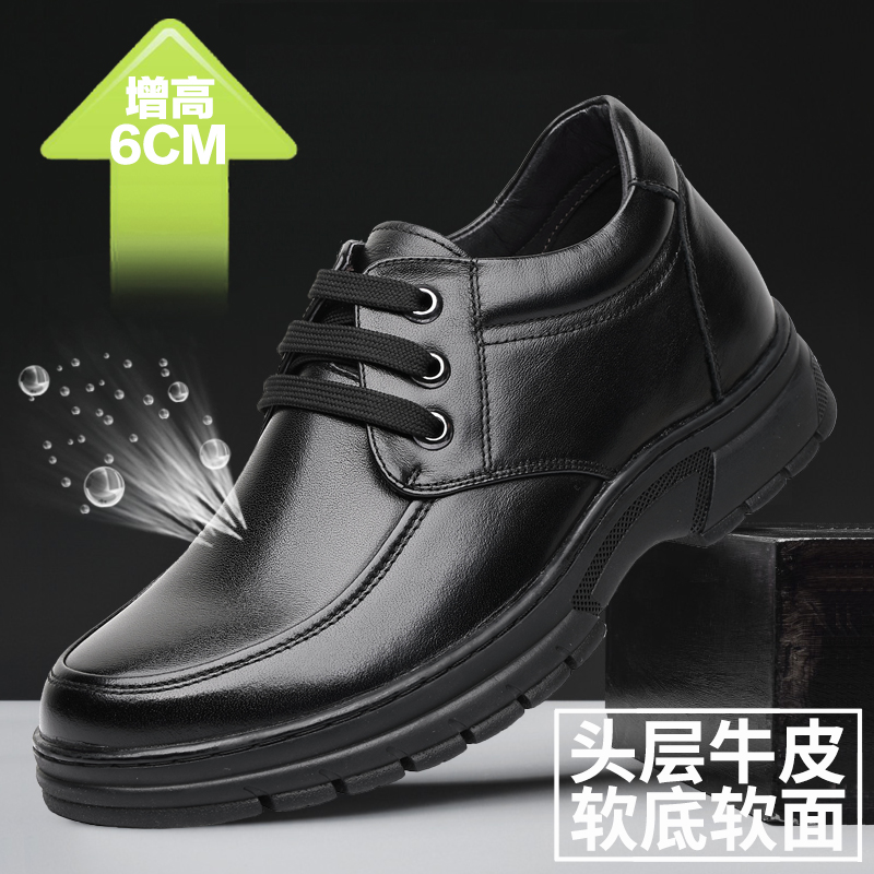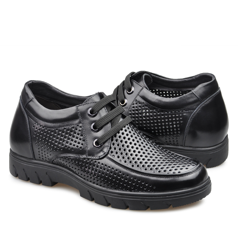 真皮内增高凉鞋男士6cm商务休闲增高鞋夏季镂空透气皮鞋洞洞软底