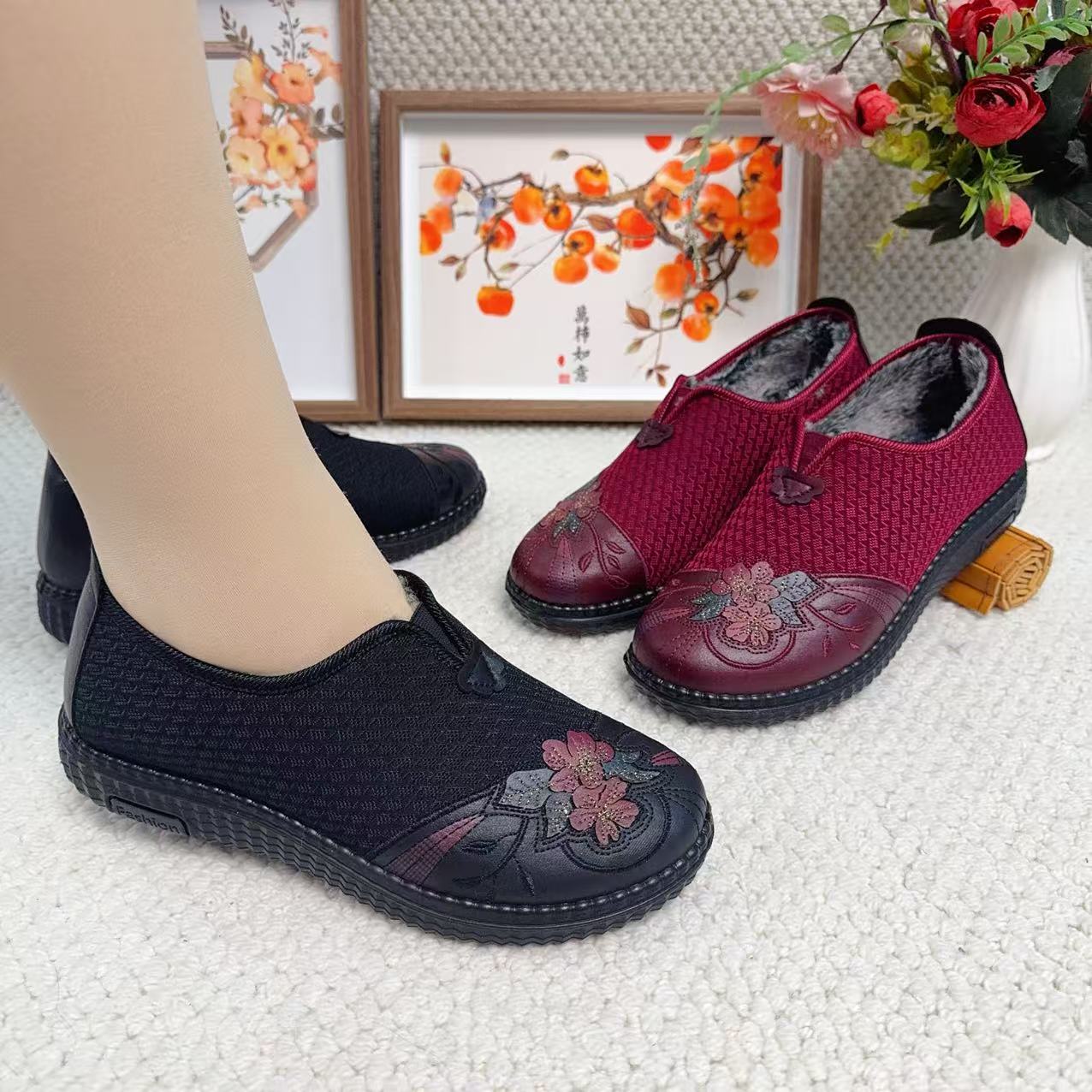 老北京布鞋女棉鞋加厚加绒保暖奶奶鞋软底防滑冬季中老年妈妈棉鞋