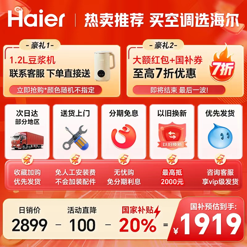 海尔空调净省电Plus家用1.5匹一级变频冷暖卧室挂机小红花旗舰店