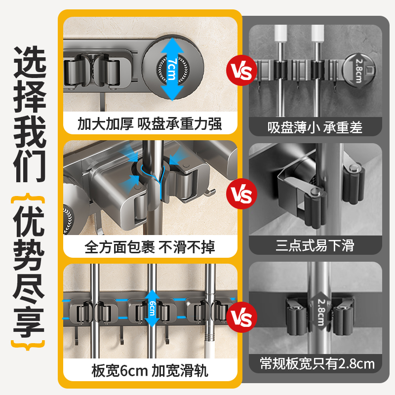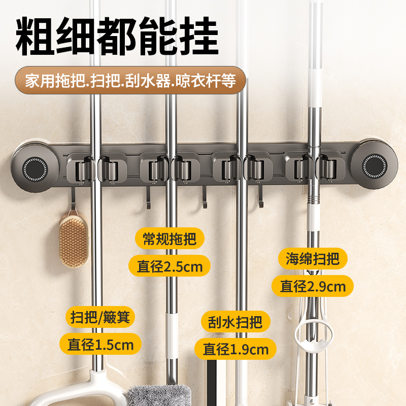 吸盘拖把夹壁挂拖布挂架卫生间免打孔清洁工具置物架浴室收纳神器