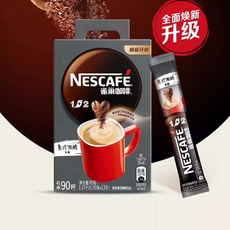 雀巢咖啡特浓三合一速溶咖啡粉学生提神咖啡意式浓醇90条盒装正品