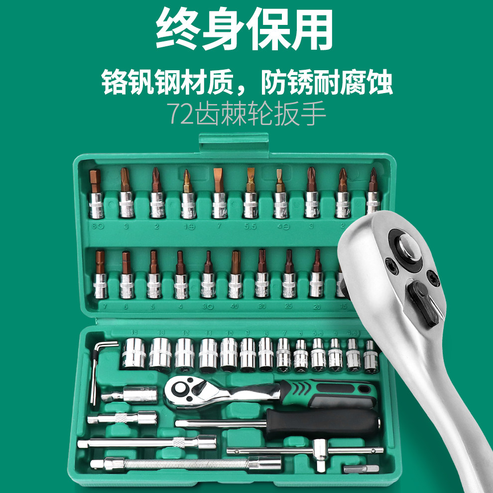 世达小飞套筒组合套装汽修工具箱电动摩托车修车维修快速棘轮扳手
