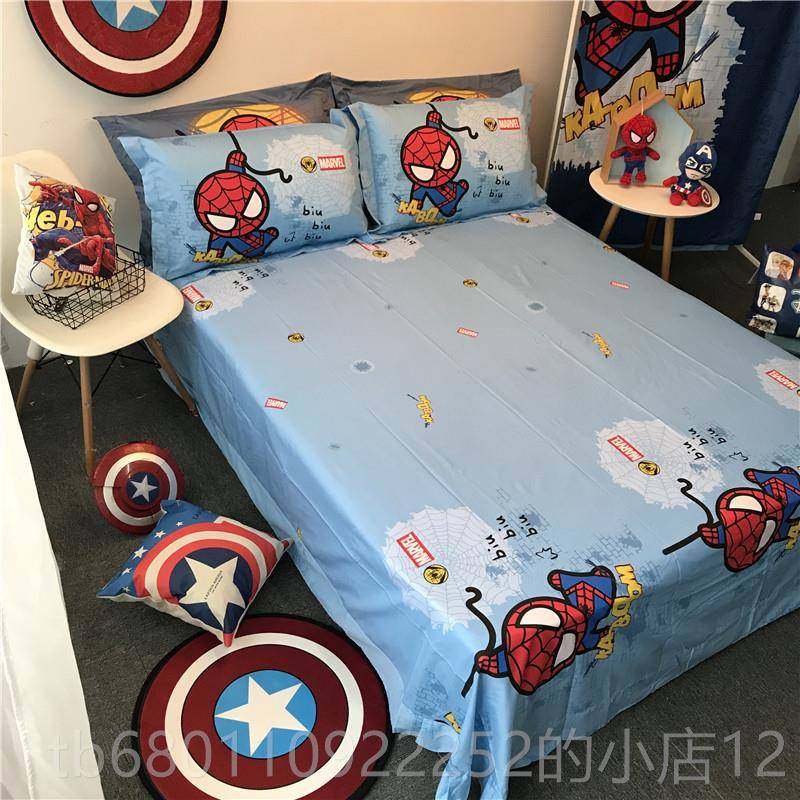 正品迪士尼卡通蜘蛛侠儿童棉纯纺四件男孩男童全棉套三件套家床单