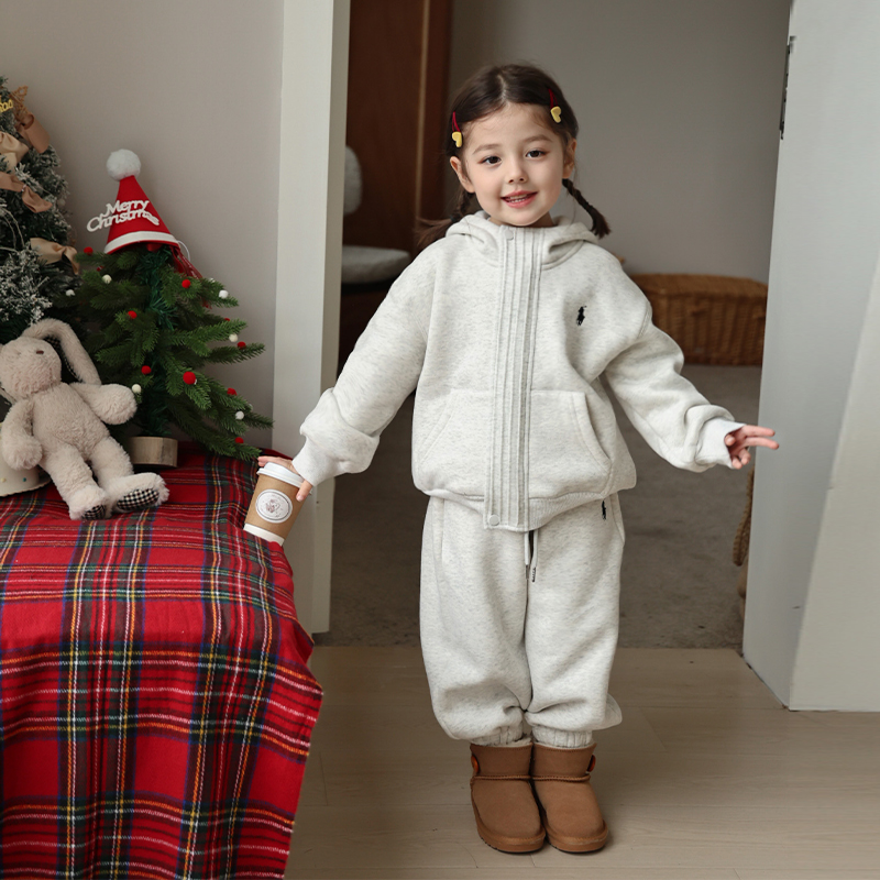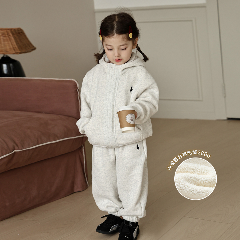 柒号童仓儿童韩版加绒休闲套装冬装新款女童外套运动裤夹棉马甲潮