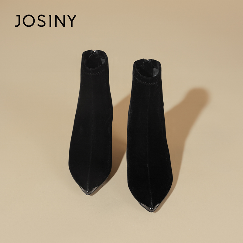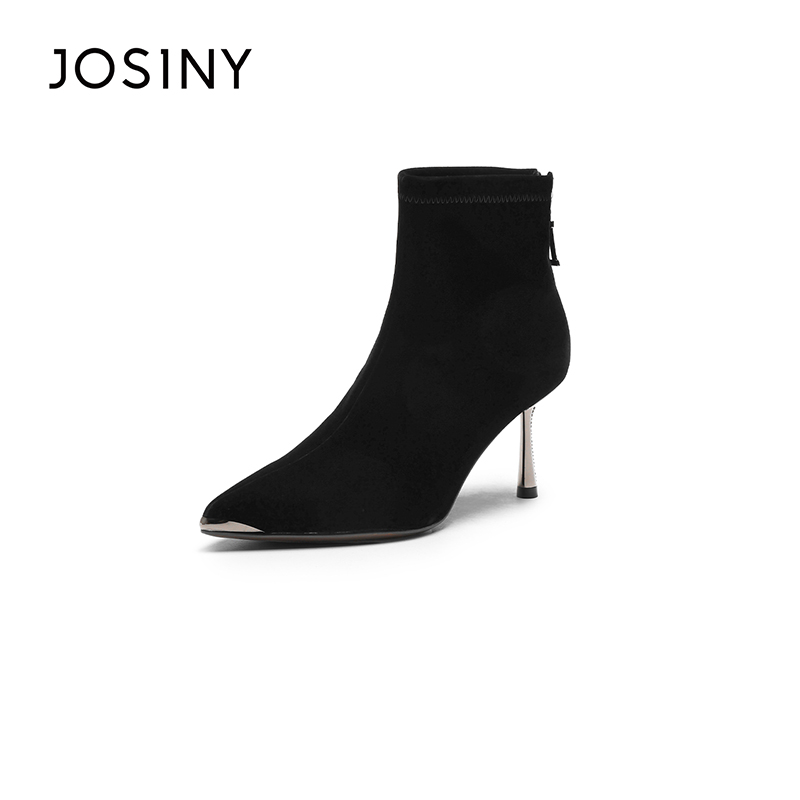 卓诗尼2025年冬季新款尖头时尚百搭休闲短筒靴气质女款