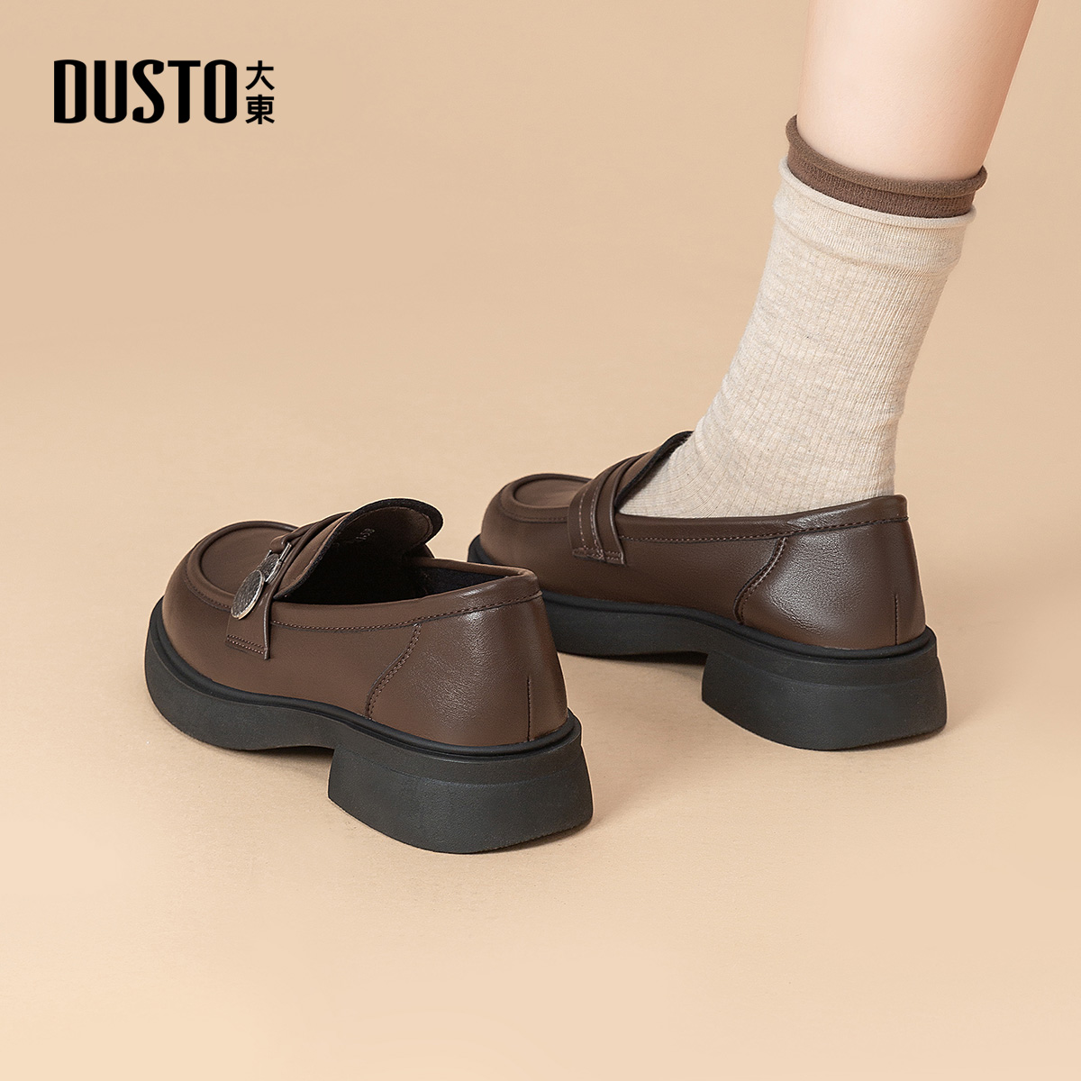 大东乐福鞋女2025秋季新款时尚简约方跟低跟休闲百搭英伦风小皮鞋