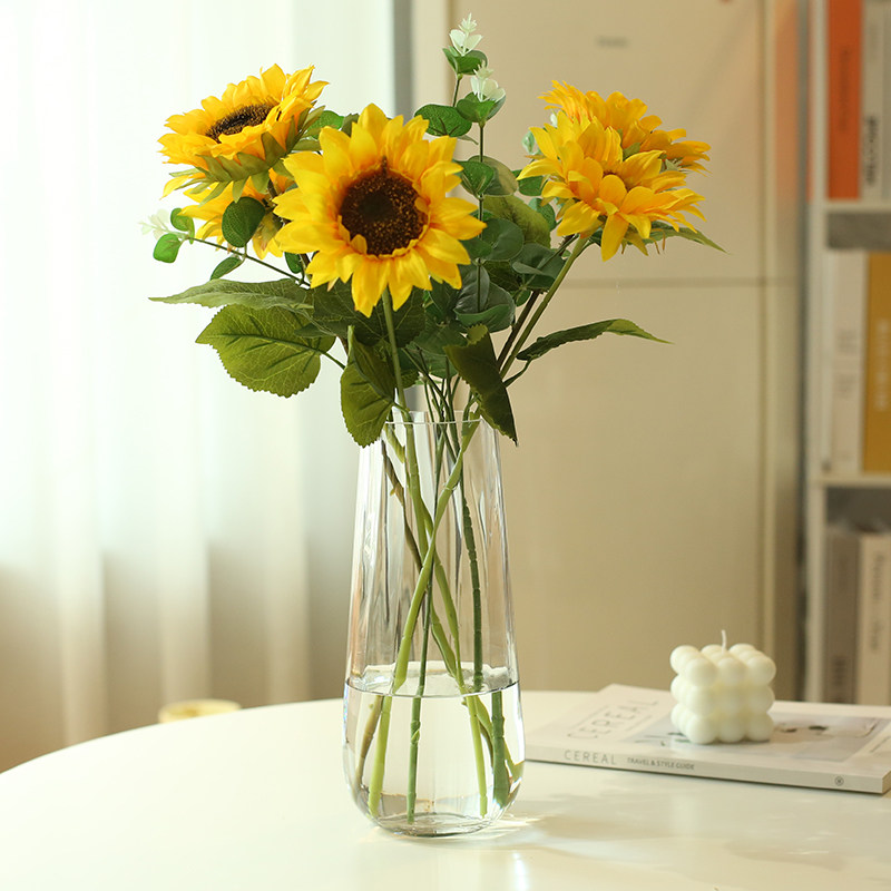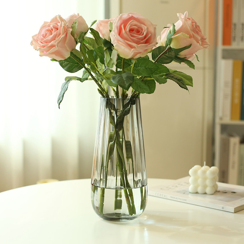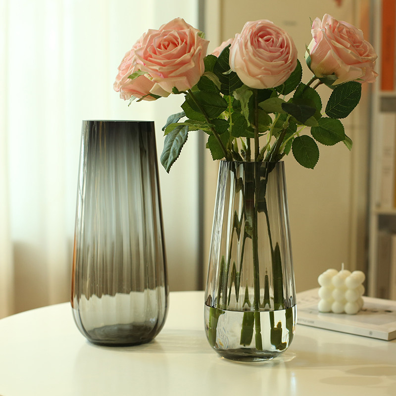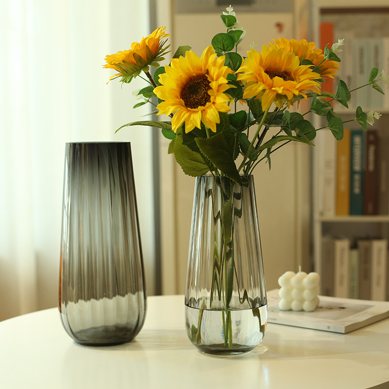 北欧玻璃花瓶透明竖纹创意客厅插花向日葵玫瑰百合花家用装饰摆件