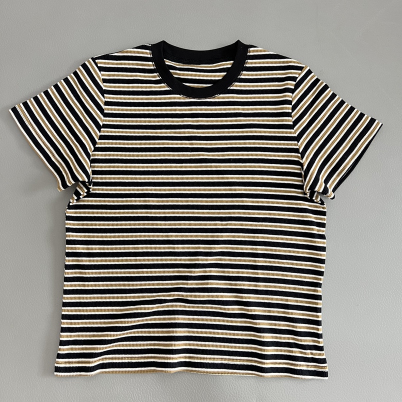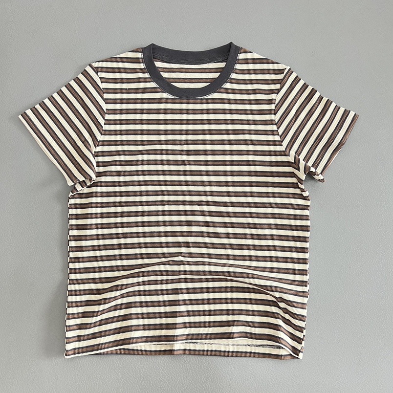 绝绝子巨好穿条纹短袖华夫格休闲复古圆领百搭T恤上衣显瘦tee女士