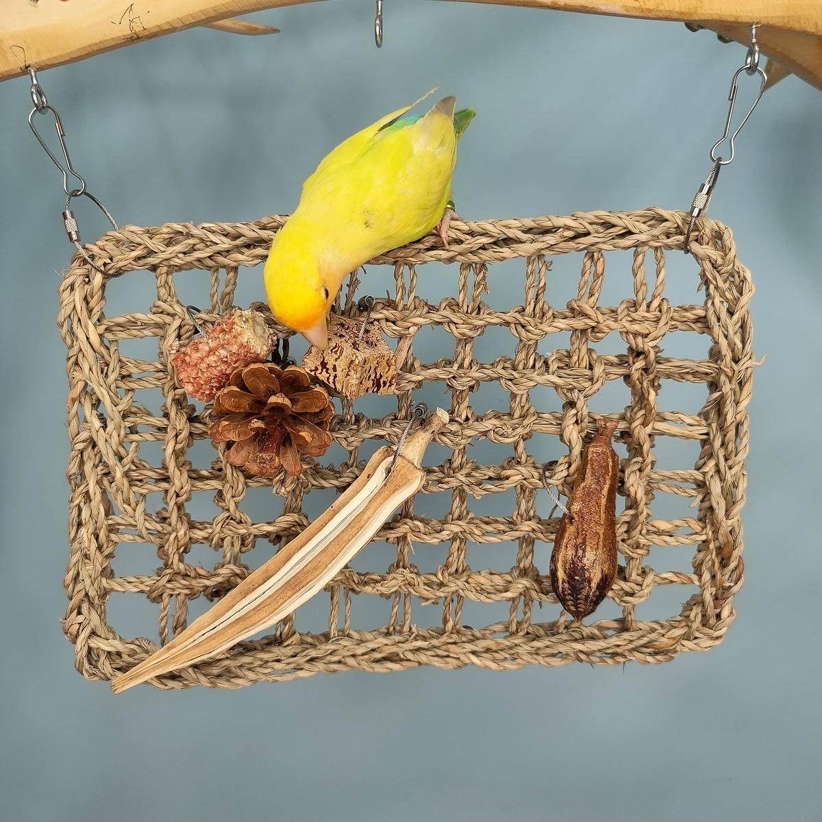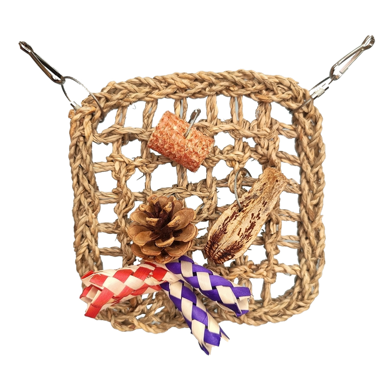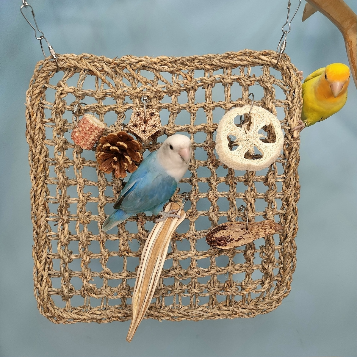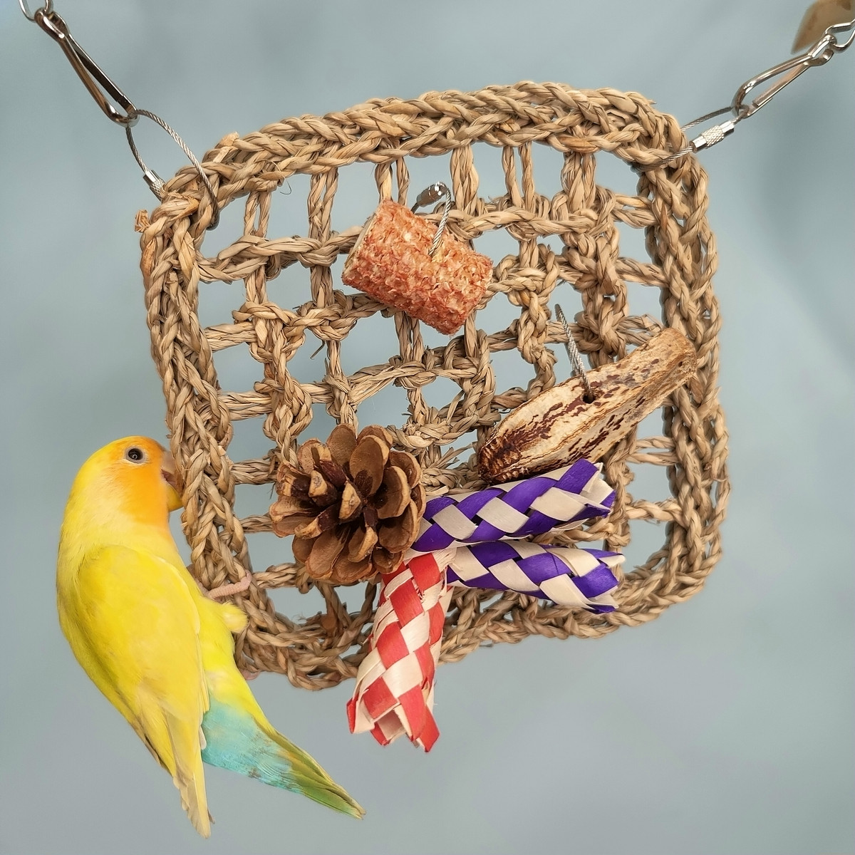 鹦鹉啃咬玩具秋葵杨桃玉米芯草编攀爬网玄凤牡丹秋千吊床鸟笼配件