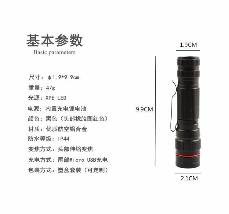 跨境518伸缩变焦强光手电筒USB充电迷你笔夹户外便携带LED手电筒