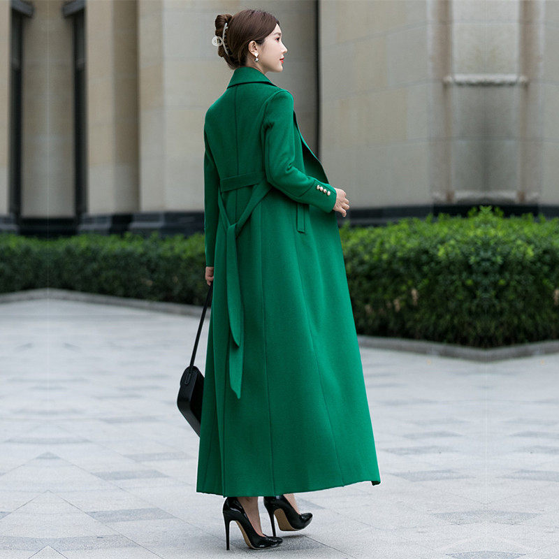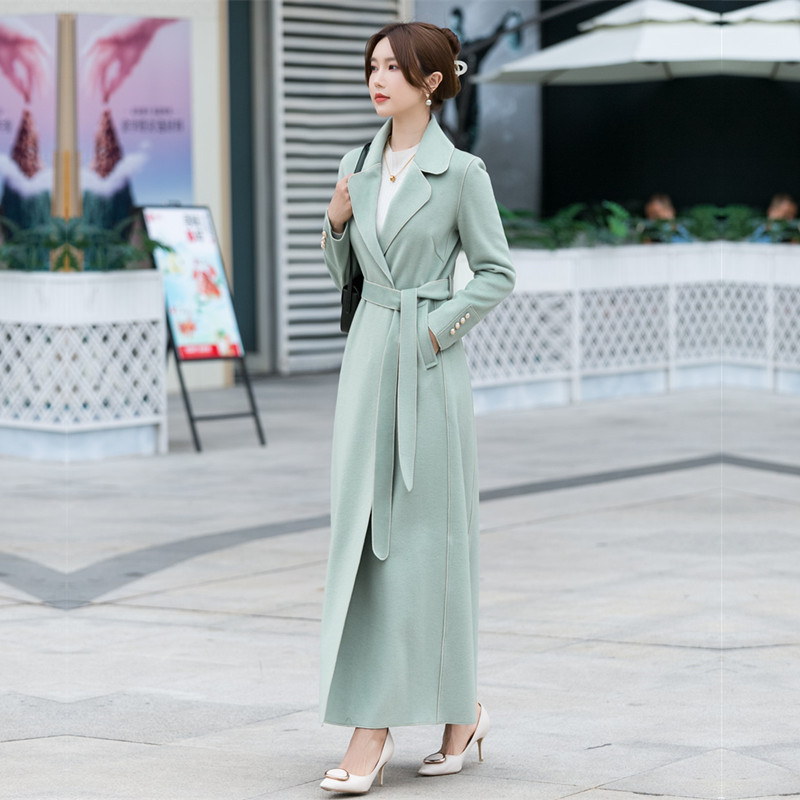 高端韩版2025春秋冬款毛呢外套女修身双面羊绒大衣显瘦超长款过膝