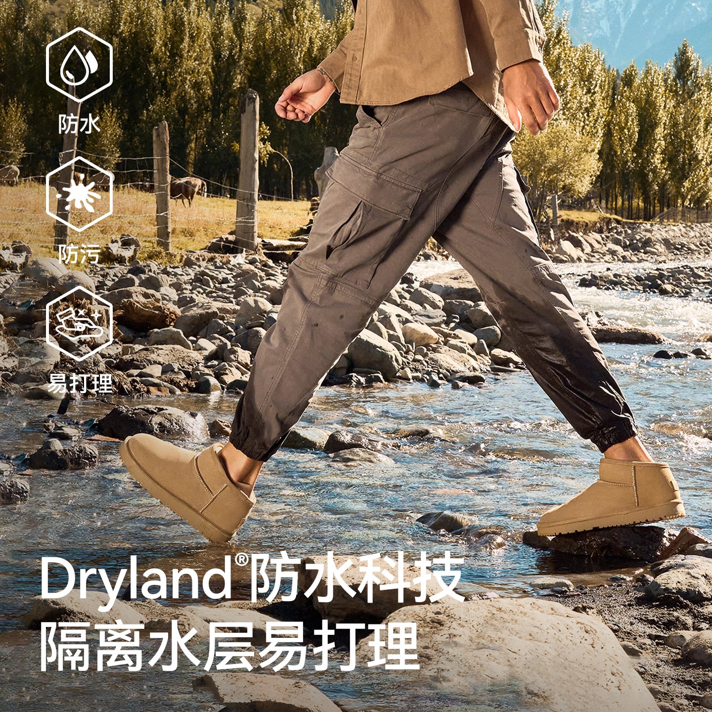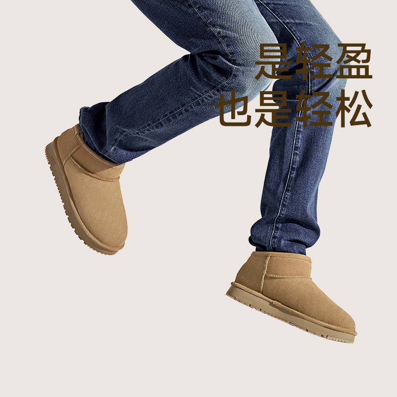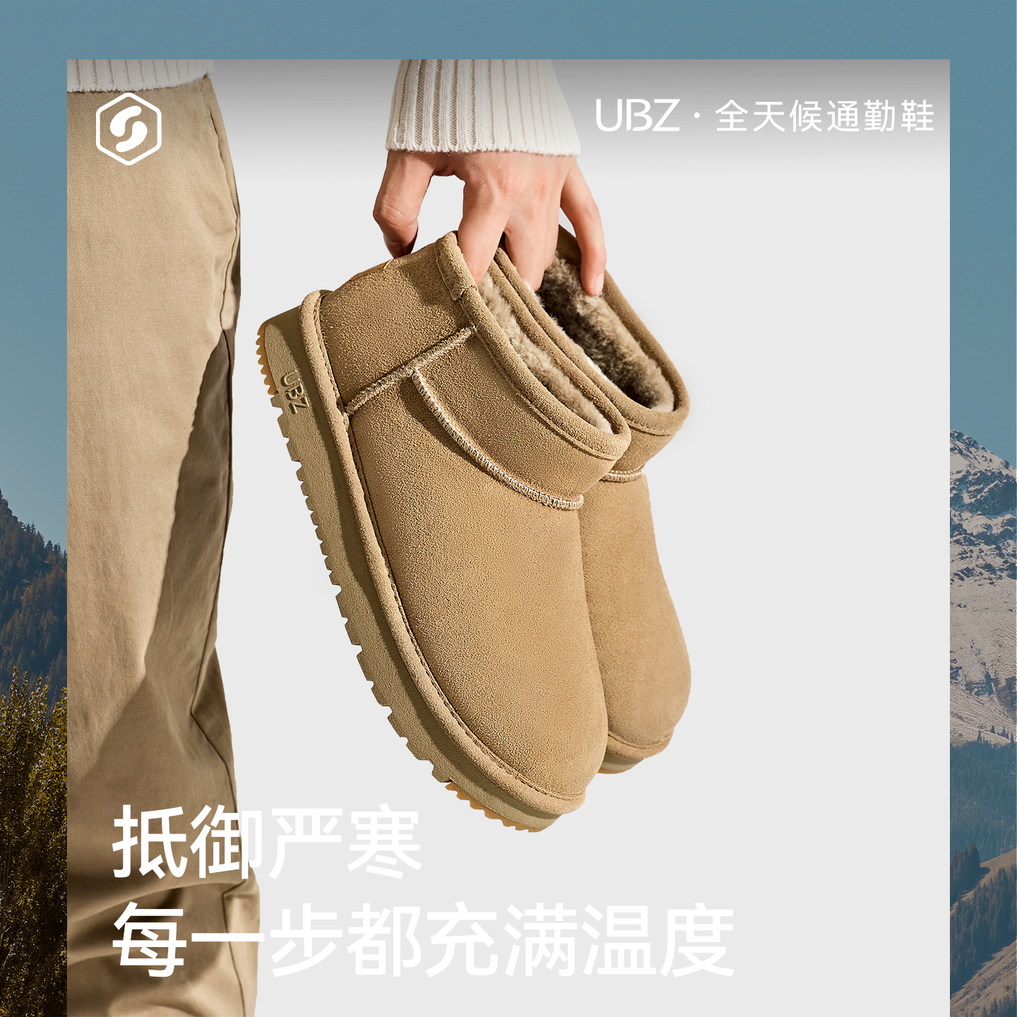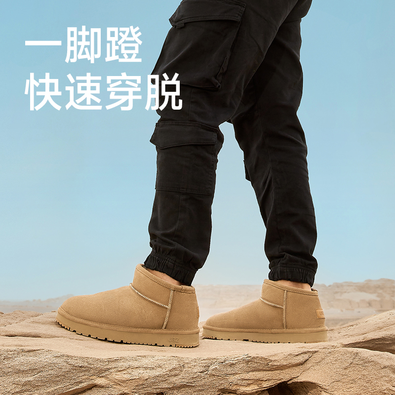 UBZ 防水雪地靴男一脚蹬低帮棉鞋2025年冬季保暖加绒防滑灰色短靴