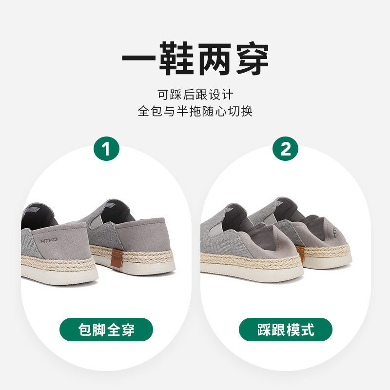 热风男鞋2025年秋季新款男士布鞋舒适休闲鞋百搭两穿一脚蹬鞋子