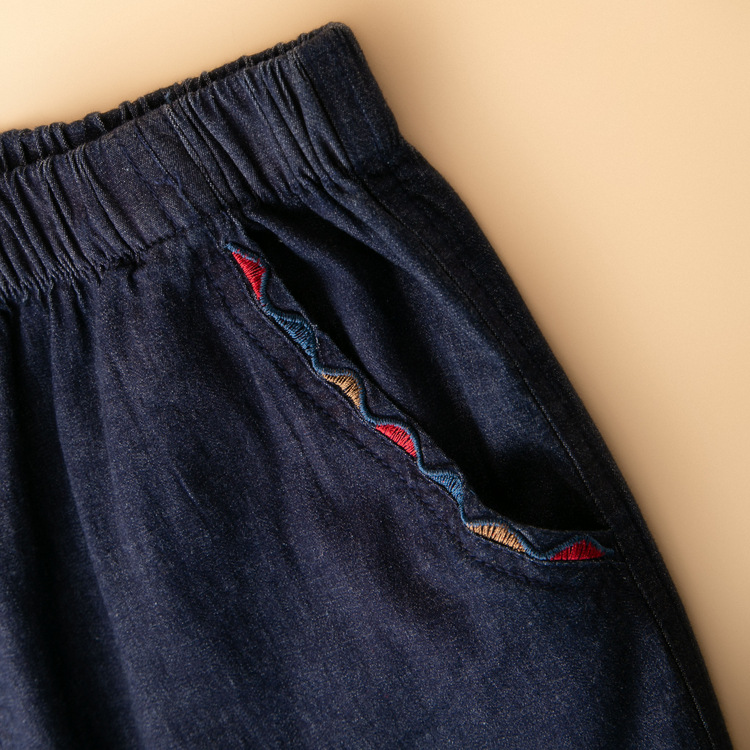 妈妈装春夏款女式高腰牛仔裤松紧腰大码女裤中老年女士宽松裤弹力