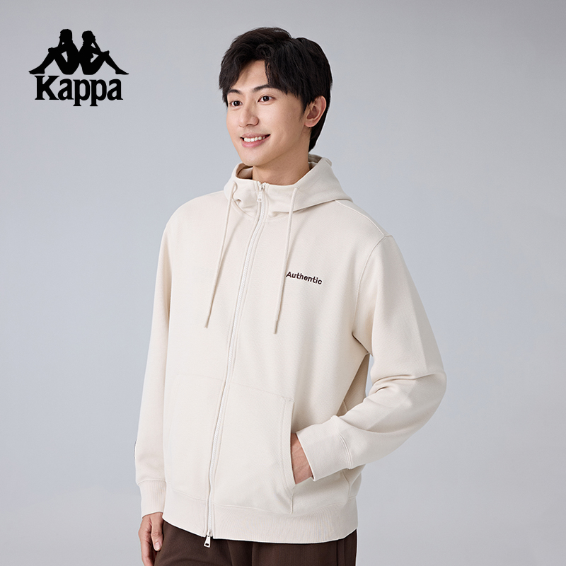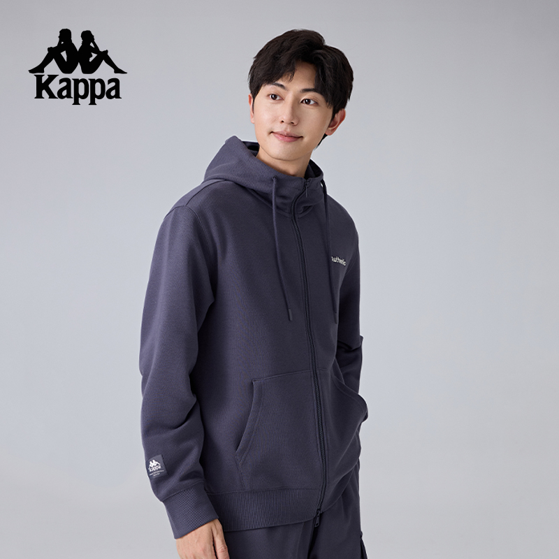 Kappa卡帕背靠背男款针织开身帽衫复古运动开衫卫衣休闲外套上衣