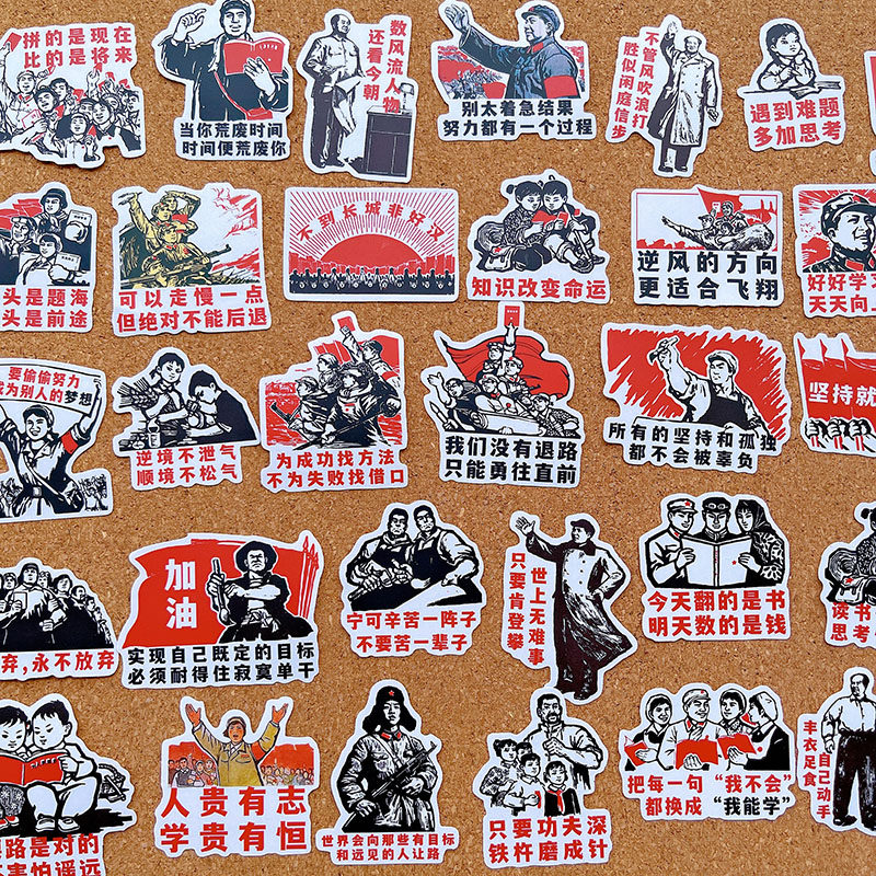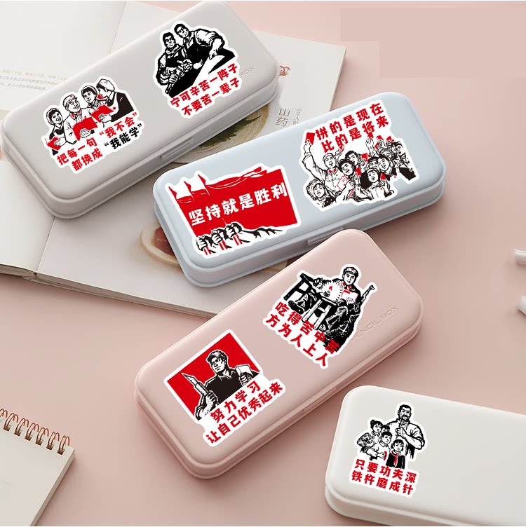 手帐贴纸红色励志文化报告书贴画