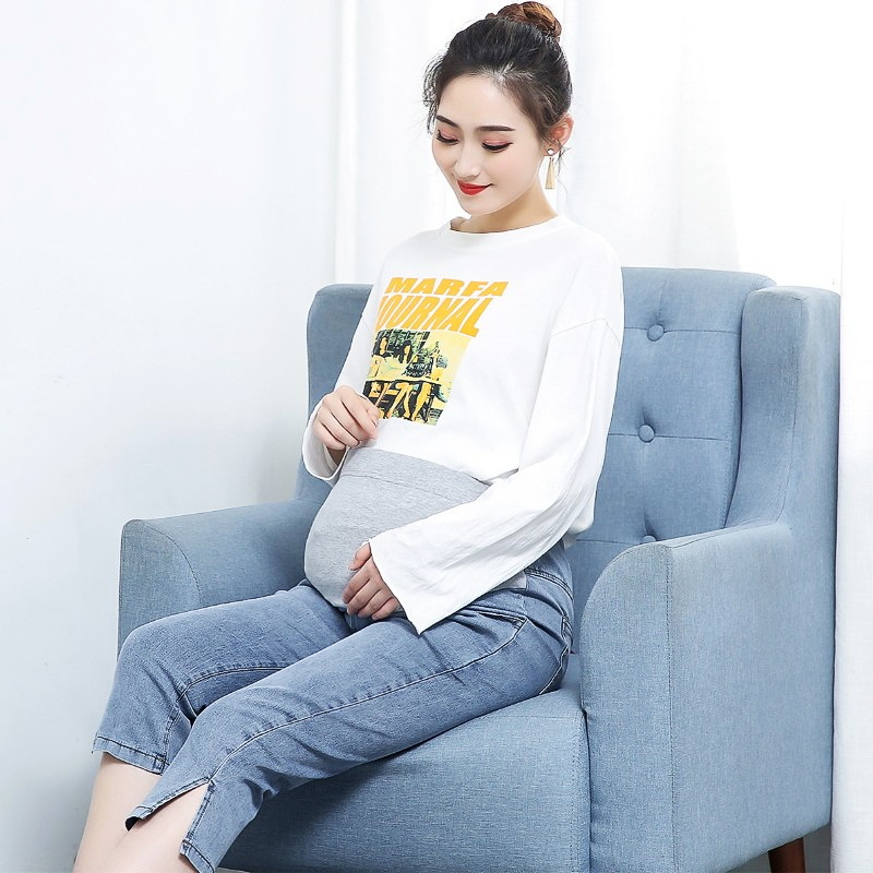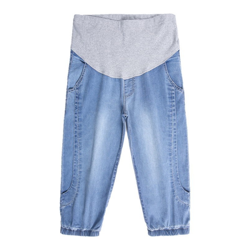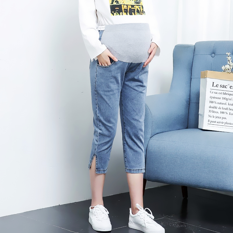 孕妇七分牛仔h裤大码弹力宽松托腹夏季薄款开叉外穿休闲蓝色女短