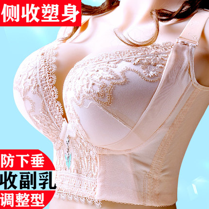 性感刺绣无钢圈文胸女薄款大罩杯收副乳防下垂调整型塑身厚杯内衣