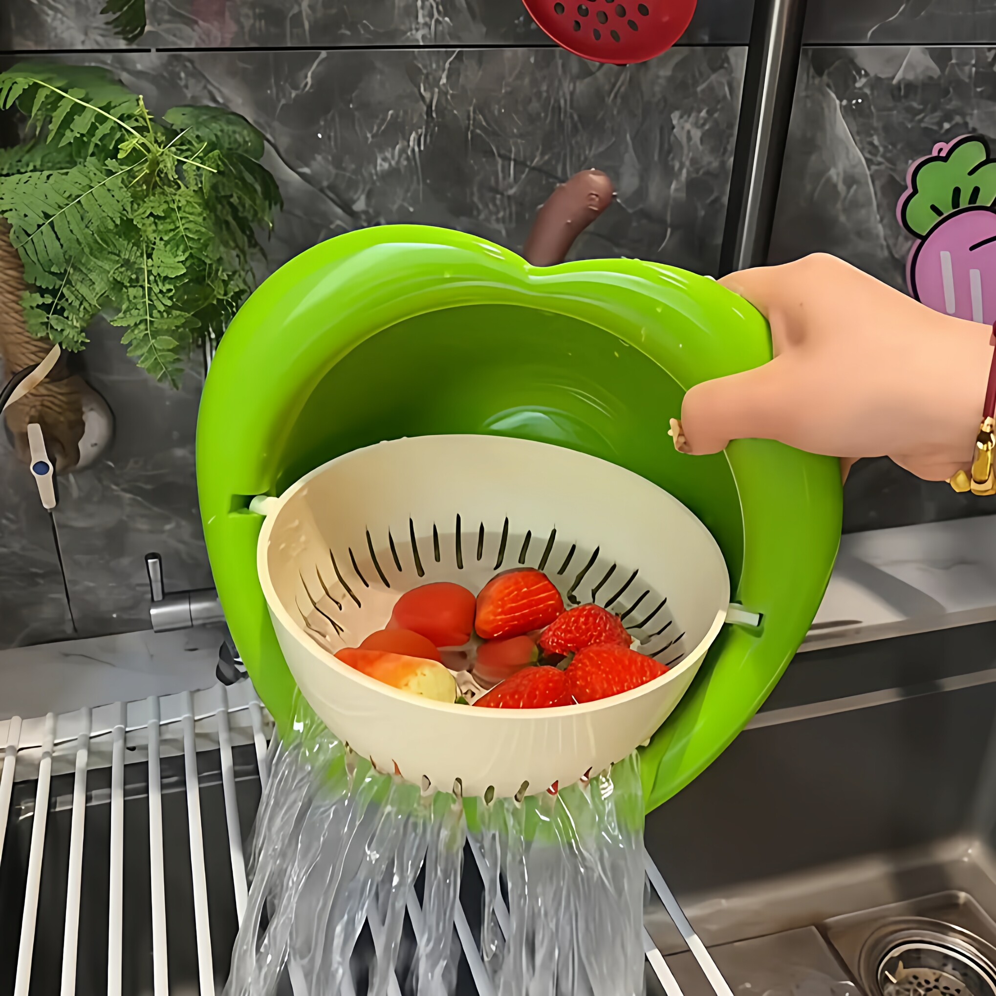 双层沥水篮淘洗菜盆可爱家用厨房客厅高颜值控水洗水果盘滤水神器
