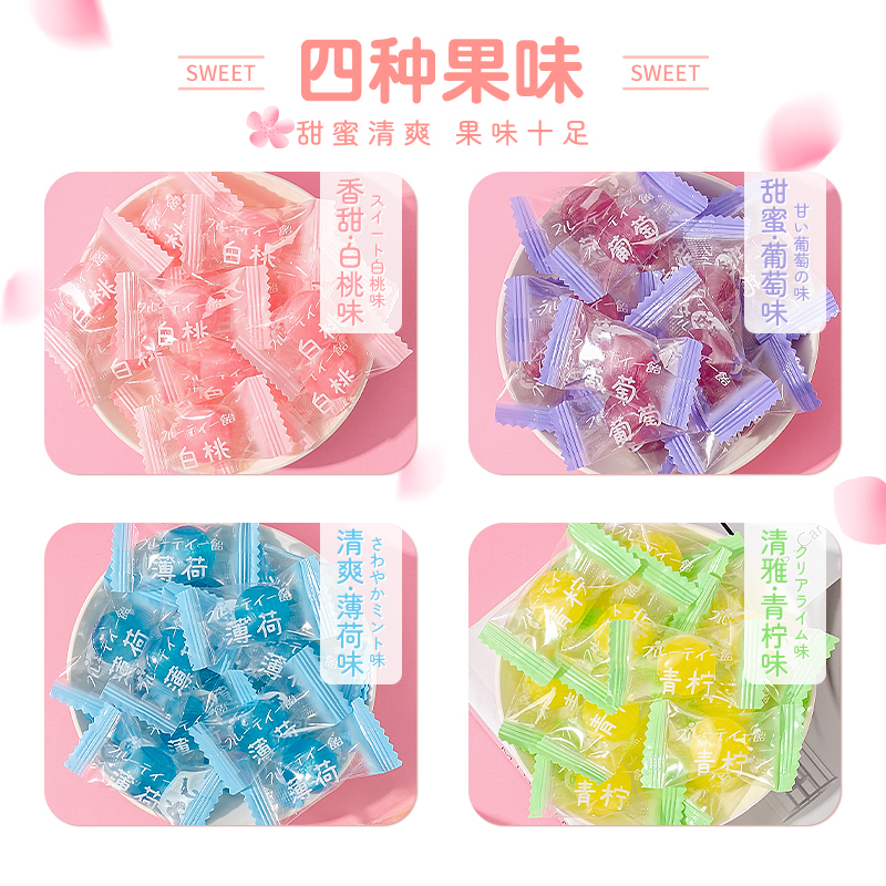 网红白桃果汁水果糖多口味高颜值硬糖小零食结婚糖果喜糖散装批发