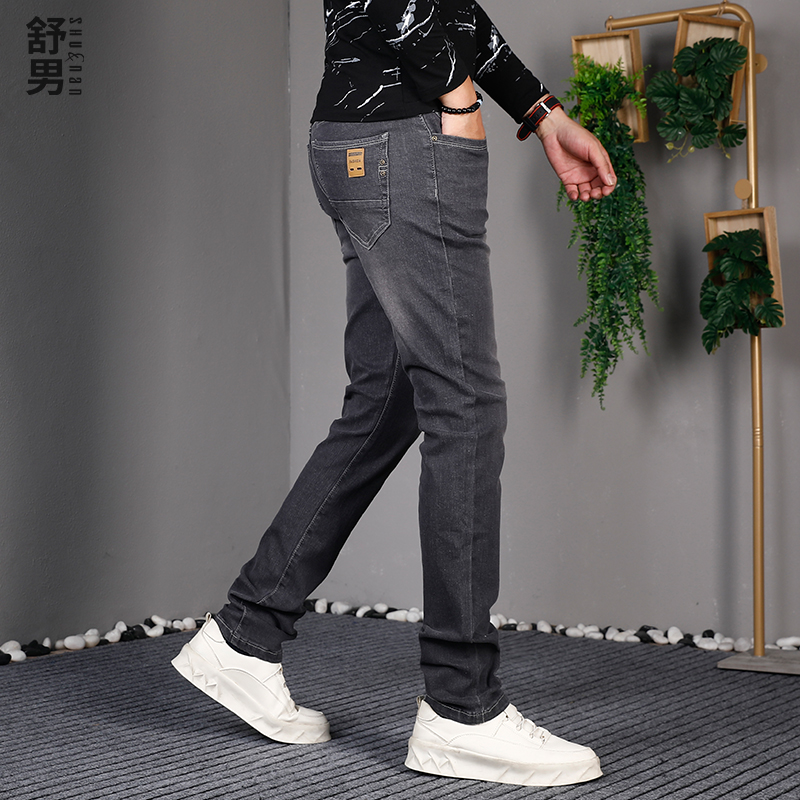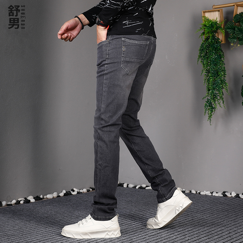 2025秋冬深灰色休闲牛仔裤男弹力潮流百搭修身小脚潮流韩版裤子男
