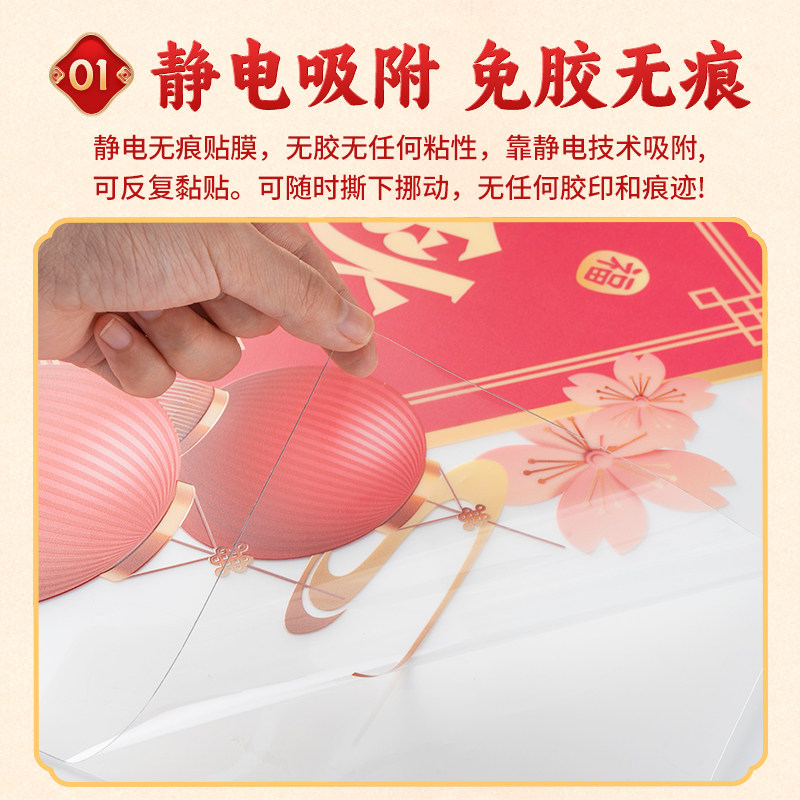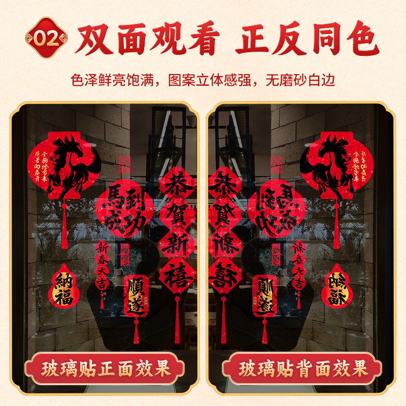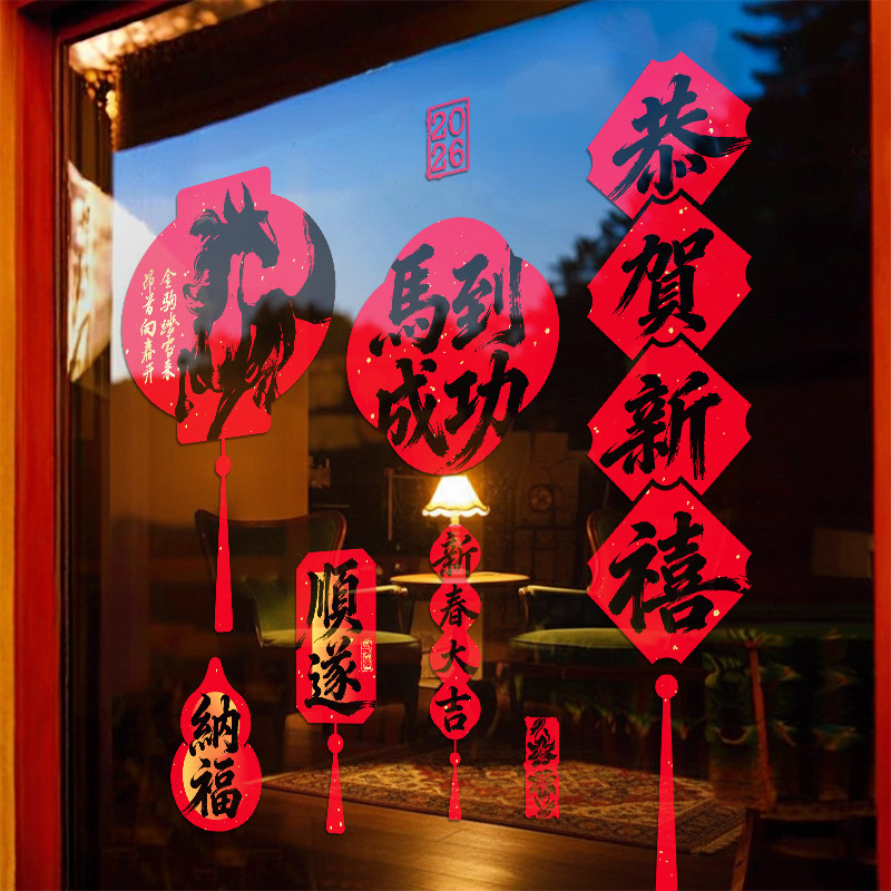 2026马年静电玻璃装饰贴纸新年春节福字橱窗布置过年厨房门贴新款