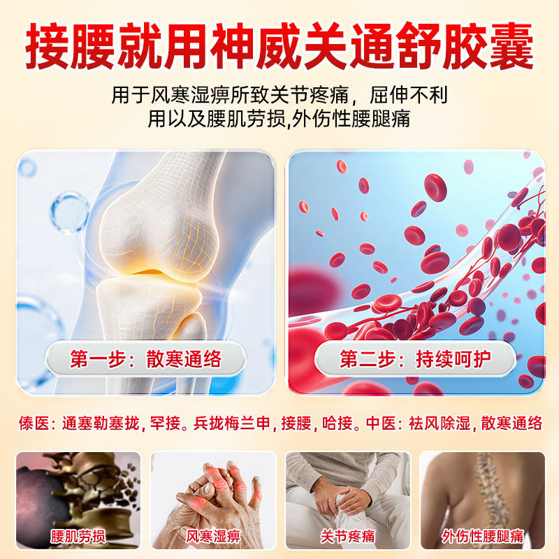 神威关通舒胶囊风寒湿痹关节疼痛祛风除湿外伤性膝腰腿屈伸不利HD