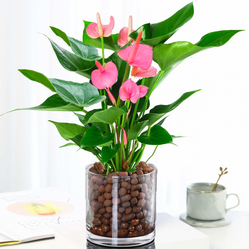 新品绿植 粉掌苗带花 室内盆栽植物 水培红掌绿萝 土培发财树
