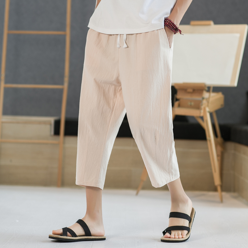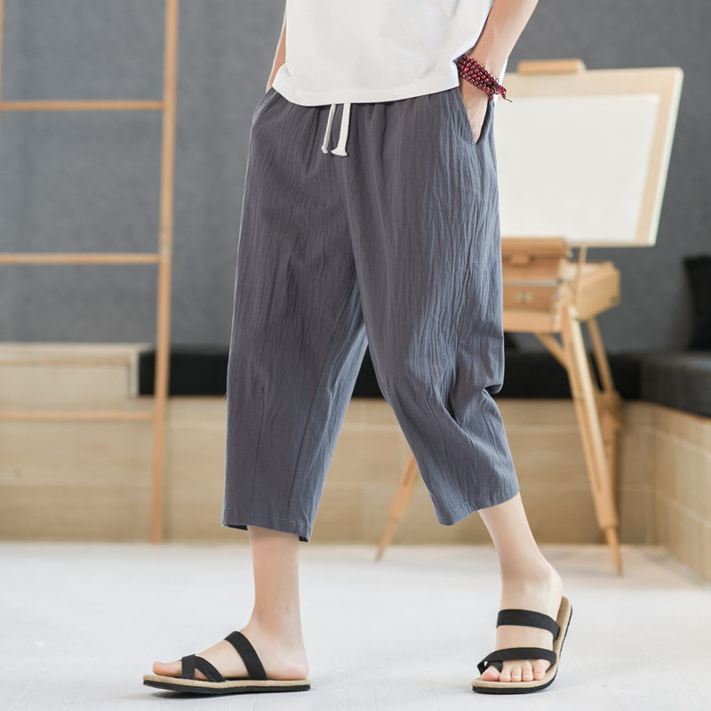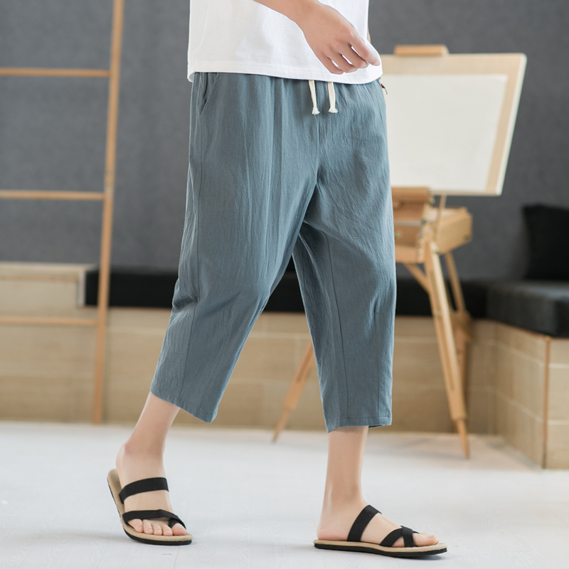 夏天八分裤男8亚麻七分裤男中老年棉麻裤子爸爸八分休闲夏薄老人