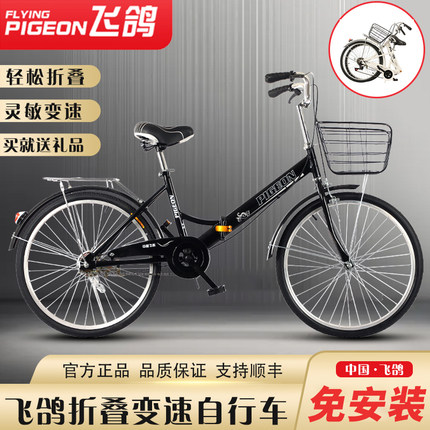 24寸飞鸽折叠自行车男女式轻便中小学生脚踏车成人可变速老人单车